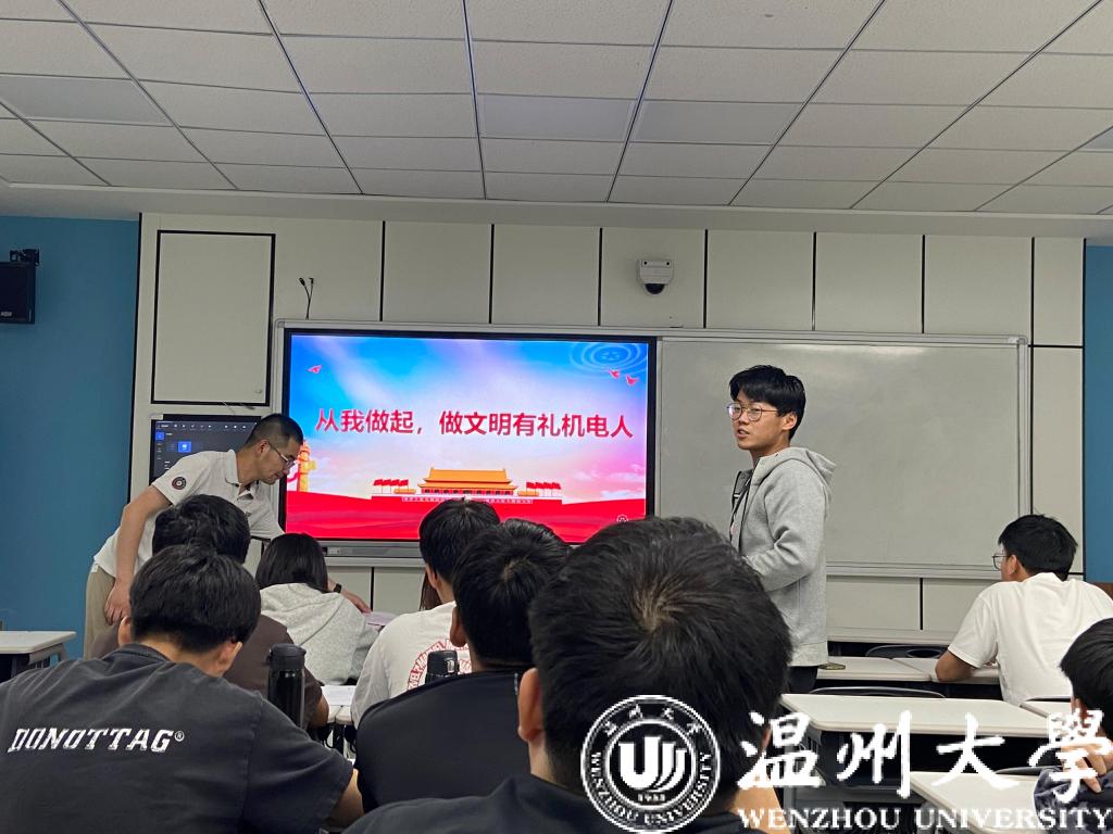大会初始,支部同志们共同观看了关于美丽温州的宣传片,了解到温州的风土人情以及现代化工业的发展对温州环境的影响包括如今的治理与改善。观看完宣传片之后,徐欢老师向同志们讲解关于创建文明城市的一些评选要求,包括市容市貌、道德文明、交通意识、互助关系等,并讲述“文明城市”这一称号的意义,是无形资产和战略资源,符合科学发展观的要求,是构建和谐社会的根基。