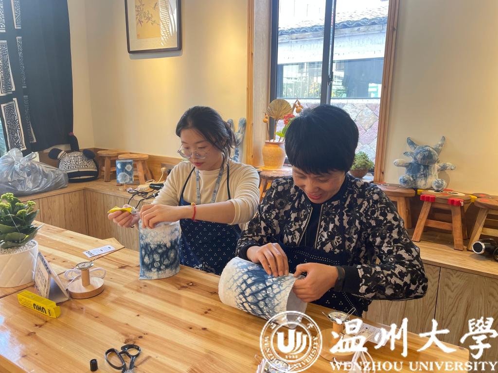 3月8日下午,为庆祝“国际劳动妇女节”,色情小说 分工会组织22名学院女教工在山根音乐小镇进行了非遗文化“扎染”的体验活动。