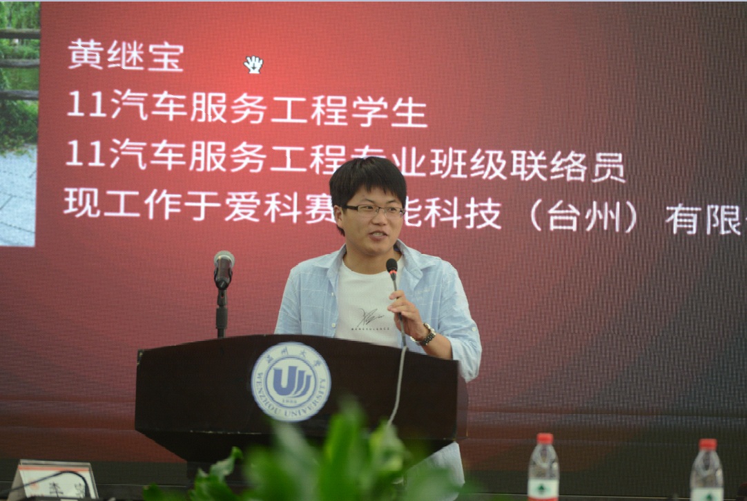 中外学生代表对校友的回归表示了热烈的欢迎。林芳同学说到“曾经你们以机电为豪;如今机电以你们为荣”GAYOS MWANGOSI said “After graduation,we may stay in China or go back to our country, but no matter where we are in the future,we will remember that we are a member of Wenzhou University.”