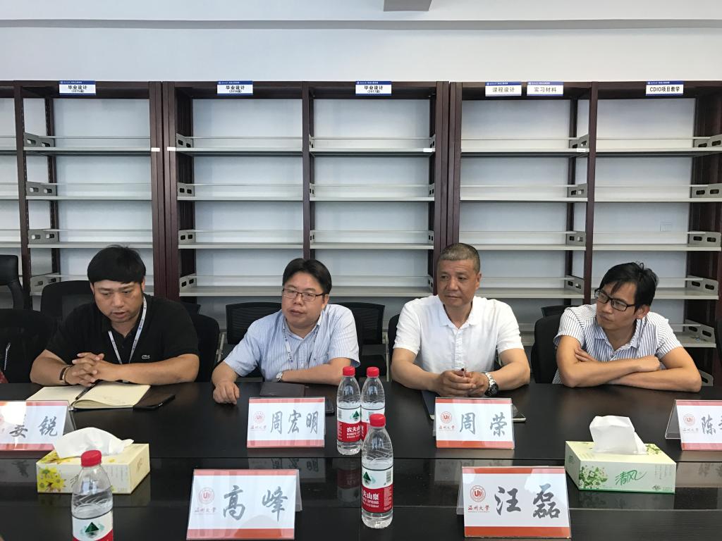 2018年5月16日上午,浙江广厦建设职业技术学院信息与控制工程学院院长汪磊一行四人来访色情小说 交流学习实验室建设经验。学院院长周宏明、党总支书记周荣、副院长姜锐、国际化教学部主任陈希章、实验教学中心副主任王晓倩、工程训练中心副主任潘敏辉接待并参加交流会。