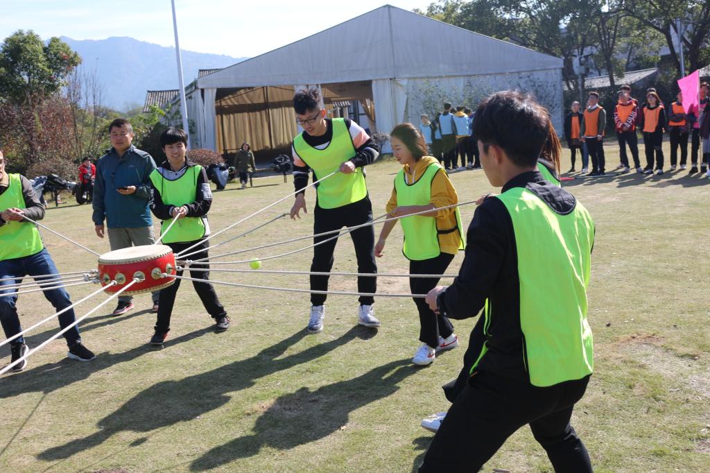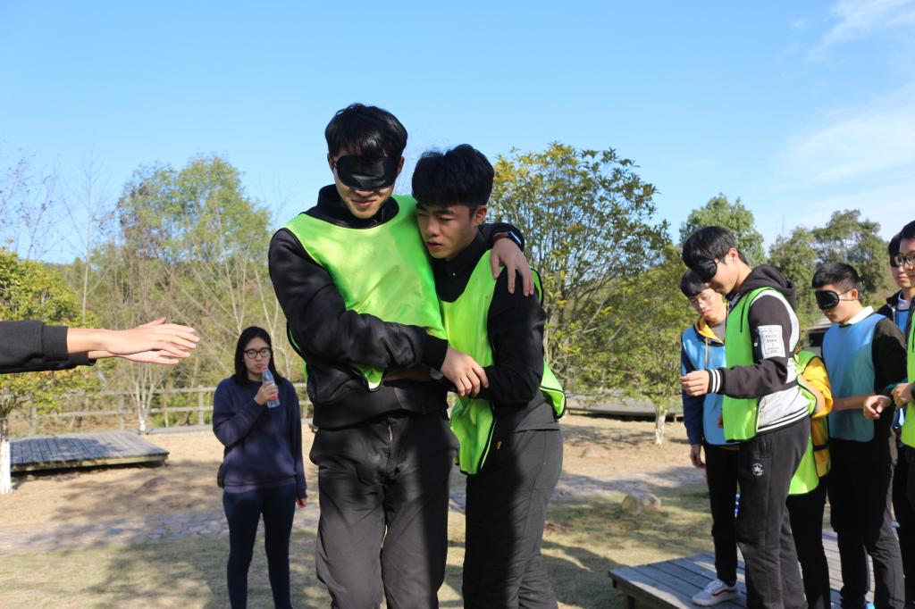 活动开始后,在教官的带领下,各位同学被分为了红、黄、蓝、绿四个团队,各团队组内进行了自我介绍,并自主选出了队长和副队长。通过确认队名、口号、队徽、队歌,绘制队旗的方式确定了每个队伍的团队文化。想出了具有代表意义的队名、口号、队徽、队歌及设计好了队旗并且用独特的表演方式展现出来。集体的合作性和集体中每一位成员在竭尽全力为集体争取荣誉中的个性都彰显得淋漓尽致。接下来的“四项接力”中每支队伍团结合作快速完成了四个项目,“孤岛求生”和“极限60秒“等有难度的活动也在大家的合作与努力下被攻克。活动完成后,在教官的带领下,同学们对一天的活动进行了总结,每个人都与大家分享了自己的收获与理解。