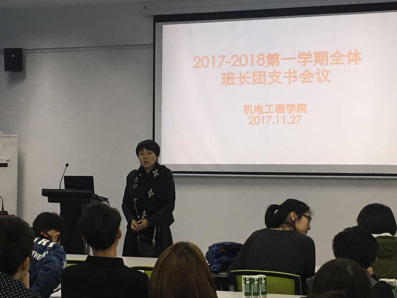 11月27日晚,机电学院在B201教室举行了全体班长团支书会议。出席此次会议的有党支部副书记李密老师,学院学生科孙双老师,郑妤老师,徐沁怡老师,以及全体班长团支书。