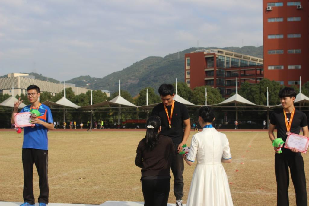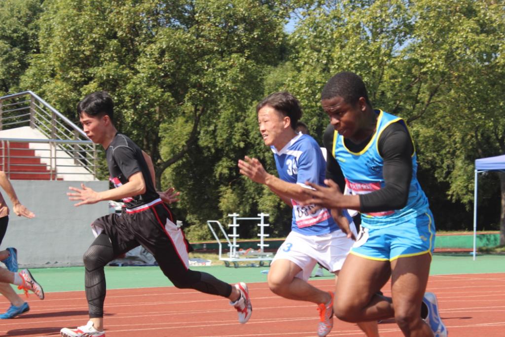 第一场径赛由Walter和楼凯参加,100米赛道上的争分夺秒,紧张刺激。随着发令枪响,Walter像离弦的箭一般冲出起跑线、加速、冲刺,漂亮地为我们学院赢得了第一块金牌,打响了精彩地第一枪。