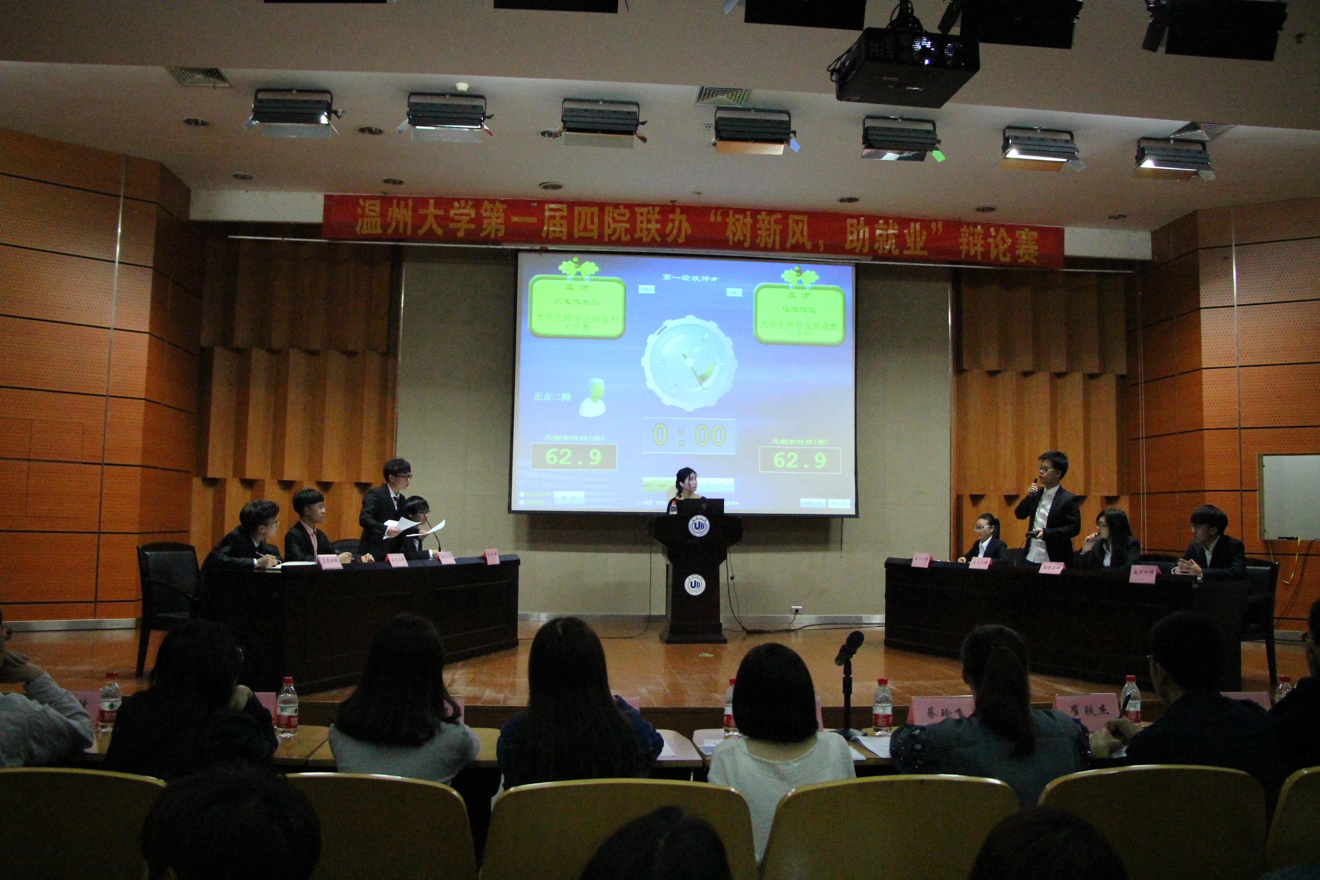 参加本次辩论赛的四只队伍分别来自色情小说 的机电代表队、化学与材料工程学院的大家说的都队、数学与信息工程学院的魑魅魍魉队以及建筑工程学院的我们特别队。各参赛队伍在短暂的自我介绍之后,便开始了激烈的辩论比赛。本次辩论赛分为两组:分别是第一组“机电代表队”对战“魑魅魍魉队”,他们的辩题是:< 大学生跨专业择业弊大于利还是利大于弊>;第二组“大家说的都队”比拼“我们特别队”,他们的辩题为< 自律他律,谁对大学生成长更有利>。
