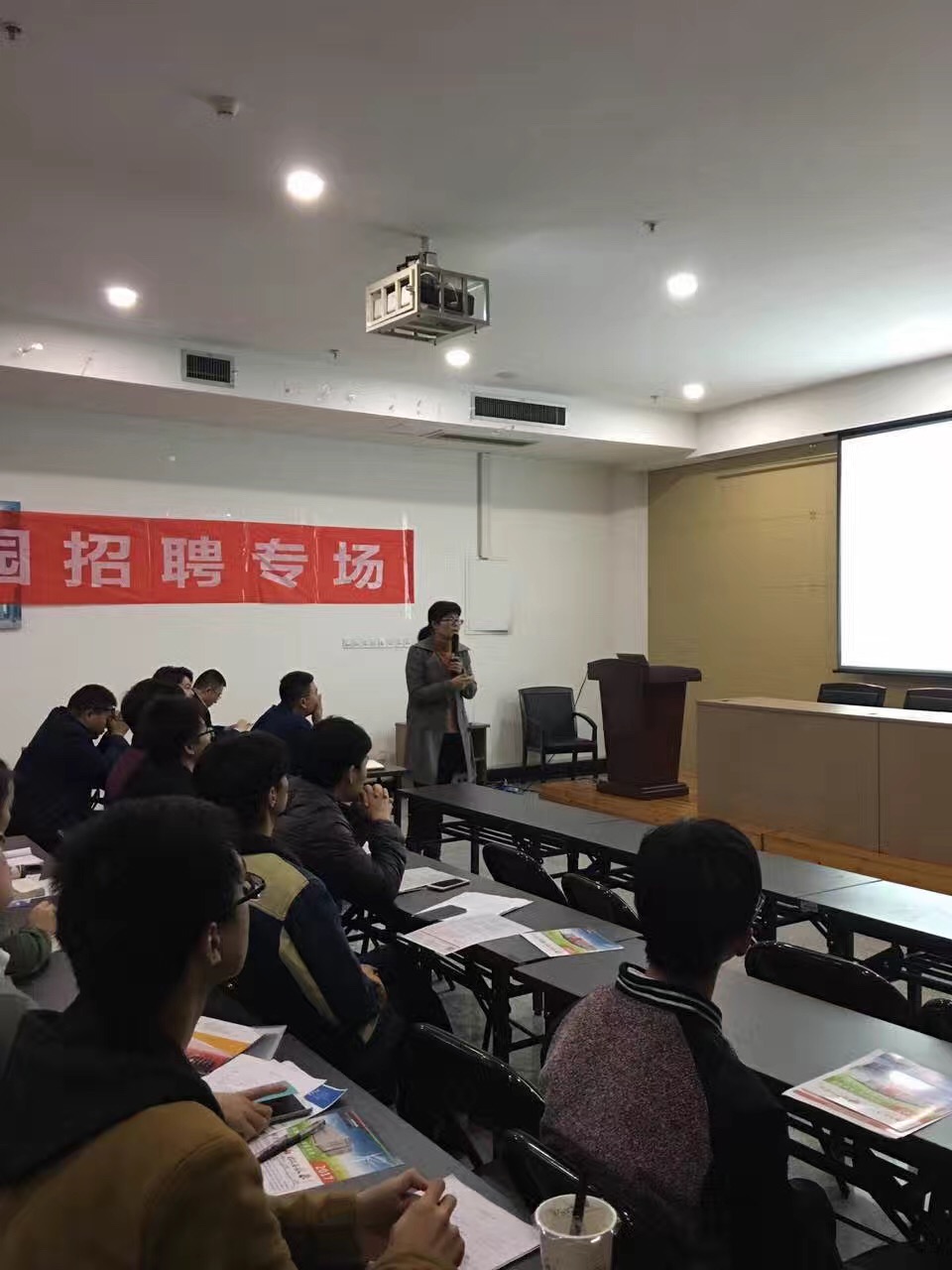 首先,南王静雯女士为到场的各位同学展示了南都电源公司简介短片以及该公司20周年宣传片,并向同学们详细的介绍了南都公司概况、企业文化,人文培养与发展方案,使同学们更深层次的了解了南都电源动力公司。