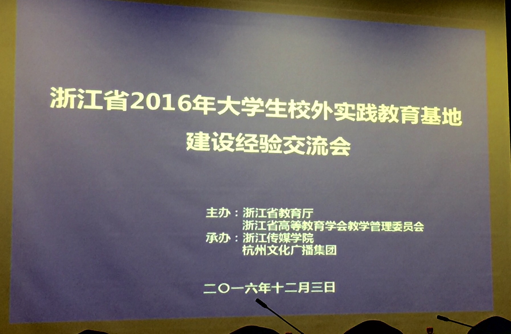为贯彻落实《教育部关于开展“本科教学工程”大学生校外实践教育基地建设工作的通知》(教高司函〔2012〕7号)精神,创新实践教育模式改革,推动校企双方共建校外实践教学基地,充分发挥国家级大学生校外实践教育基地的引领示范作用,推进我省大学生校外实践教育基地建设工作, 12月3日我省在杭州召开了浙江省大学生校外实践教育基地建设经验交流会。本次会议由浙江省高等教育学会教学管理委员会主办,浙江传媒学院和杭州文广集团承办,省教育厅高教处王国银副处长、杭州文广集团副总裁王炜、浙江传媒学院副校长姚争以及来自全省30所高校的职能部门负责人、31个国家级和34个省级校外实践基地的负责人参加了本次交流会。