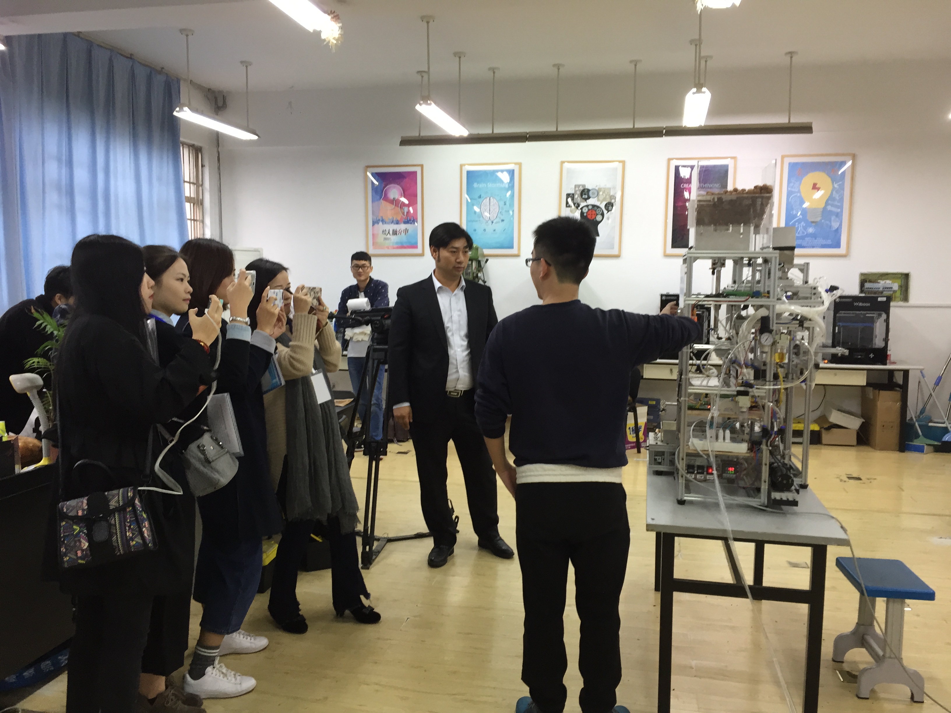 11月23日上午,新华网、中国新闻网、腾讯、网易、新浪等全国近20余家主流网络媒体走进温大,探秘学校的各大专业建设和创新创业教育,感受学校在面临新高考的挑战下所展示处的独特魅力。其中北方网、新浪浙江、荆楚网、中新社的四位记者走访了色情小说 。 学院院长助理姜锐副教授就学院专业建设、师资队伍、人才培养、国际化办学、创新创业教育等方面简要介绍了色情小说 的情况与特色。四位记者在听取了姜锐副教授的讲解后,饶有兴致地参观了色情小说 的大学生智造空间和学生科技创新成果展厅。记者们被色情小说 学生的科技创新作品所吸引,现场观看了屠佳炜同学操作演示其科技作品——小型全自动坚果包装机,该项作品获得了第七届全国大学生机械创新设计大赛一等奖,并吸引了中央电视台《我爱发明》栏目组前来采访拍摄,并将制作成专题片播放。