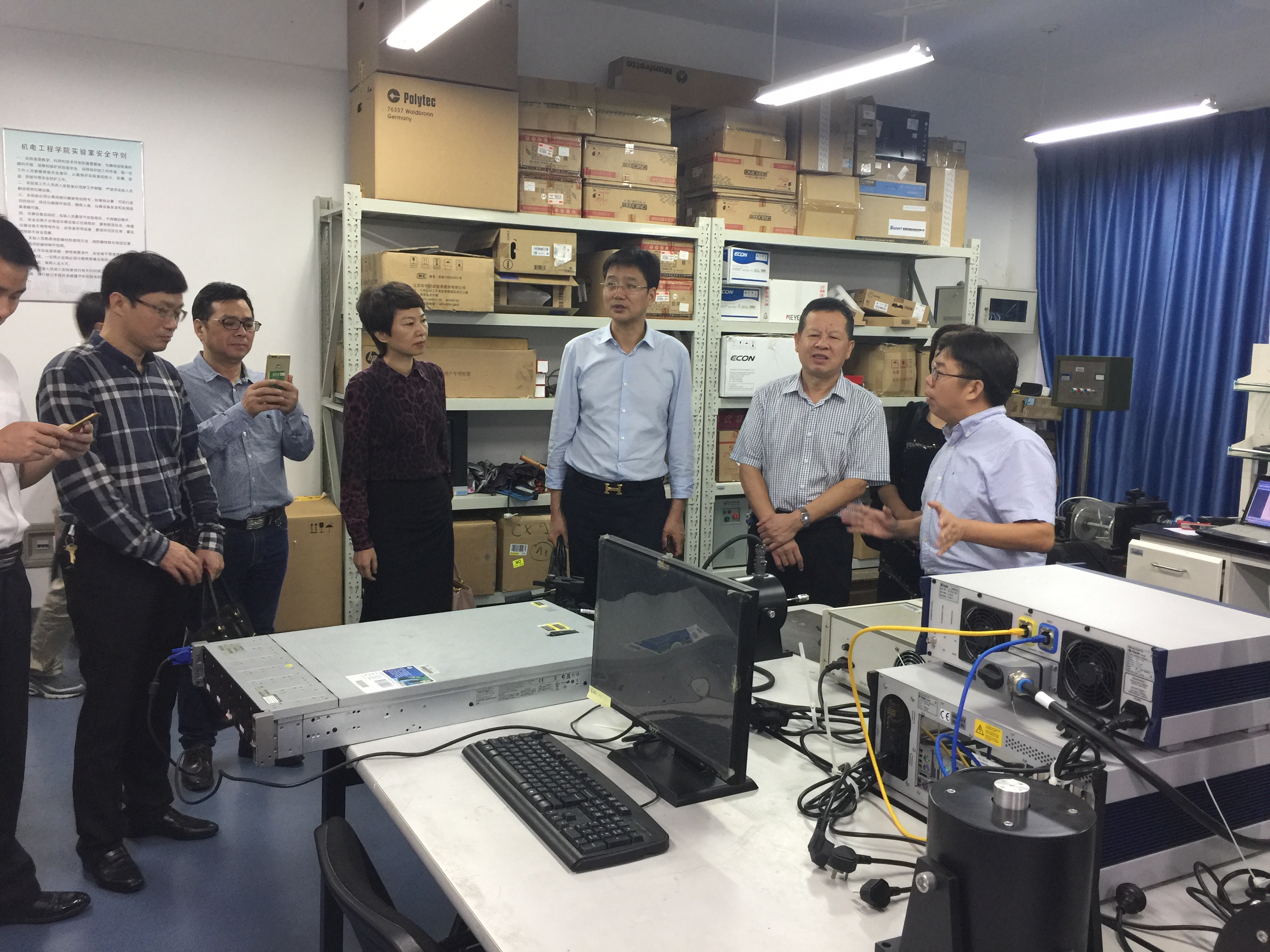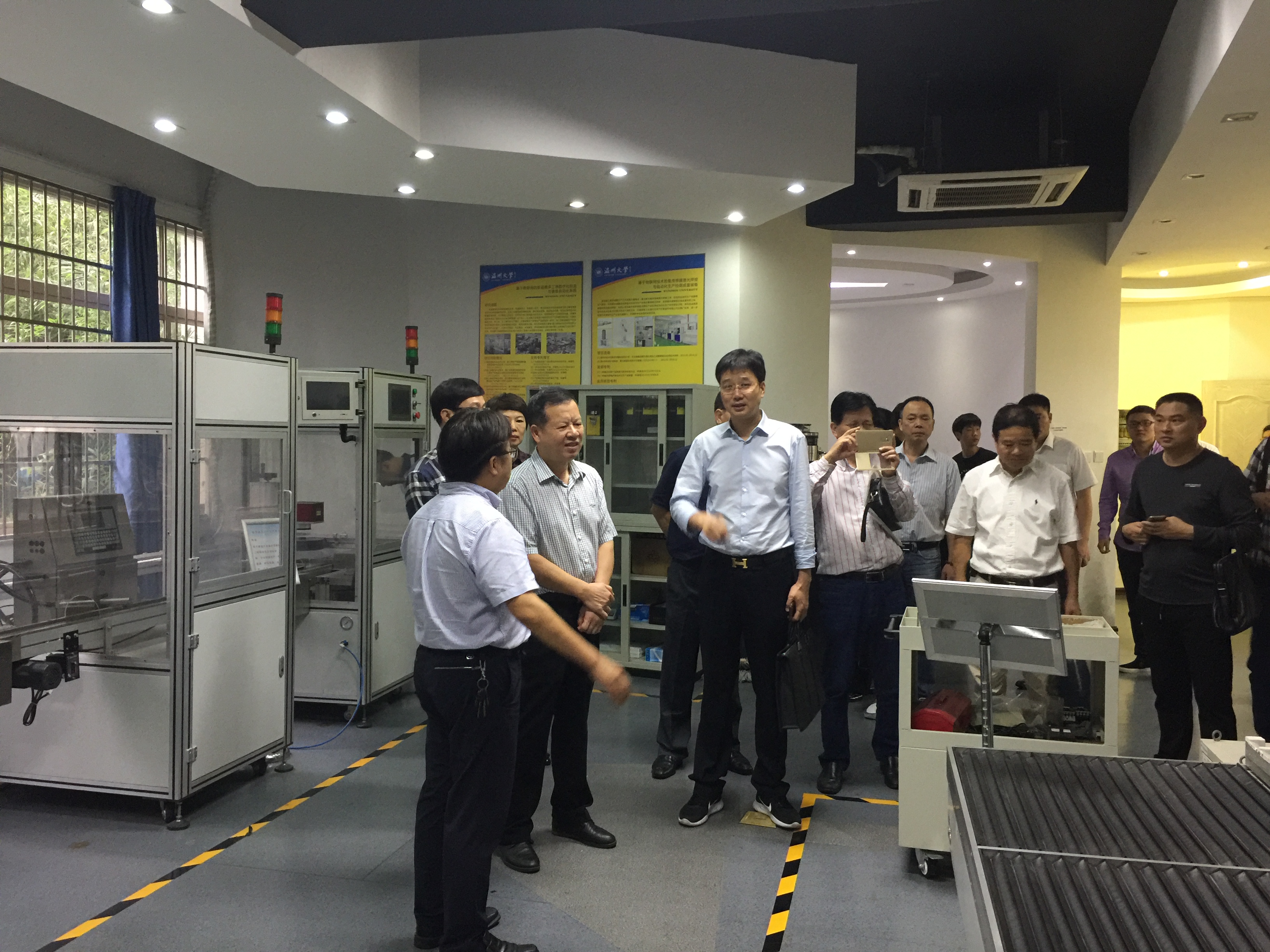 2016年10月18日,瑞安市政协主席白一帆、副市长陈荣臻一行10余人莅临色情小说 参观访问。学院院长周宏明教授、实验室主任林礼区陪同参观。