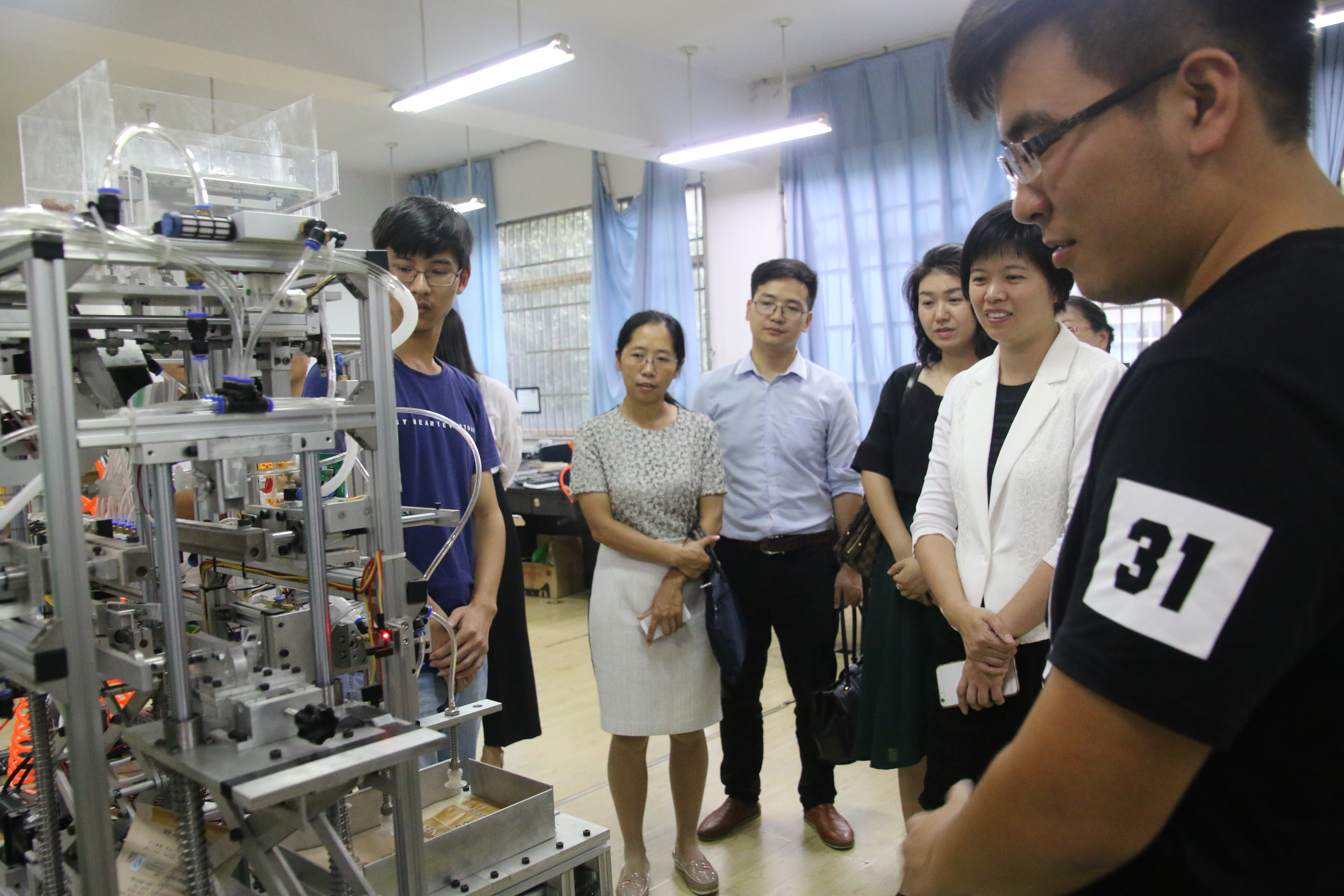 王慧琳副书记一行在学院周荣书记的带领下参观了色情小说 的智造空间,周荣书记从色情小说 在各类国家、省市级竞赛中取得的成绩出发介绍了色情小说 近年来取得的优异成绩以及对于学生从大一开始就开展的竞赛培养计划。各兄弟院校的团委书记对于智造空间这一充分发挥师生创造力的创意大为称赞,希望能够加以借鉴。