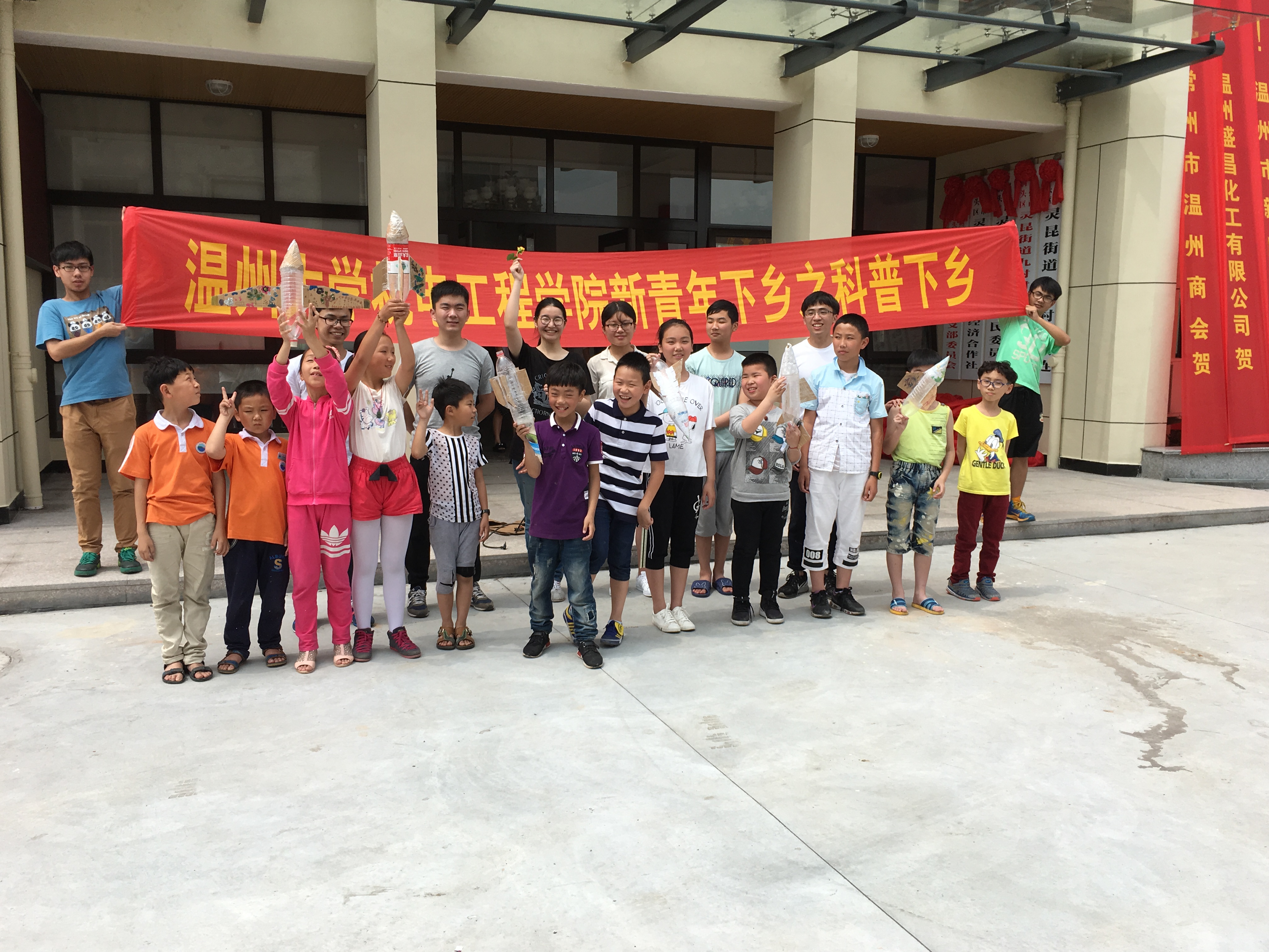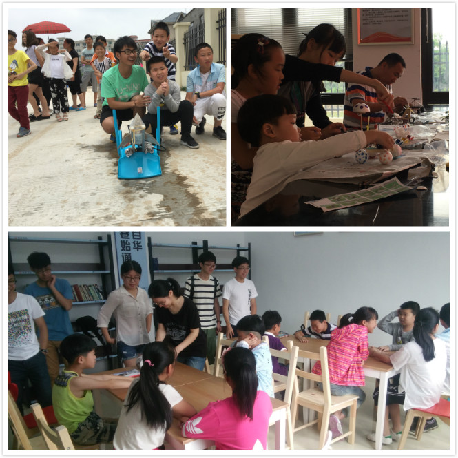 到达九村村委会,村书记和孩子们早已饱含热情的等待着新青年的到来。而后,活动就开始了。两两成组的孩子们各由一位新青年带领,开始了奇妙的科技小制作之旅。5组小朋友参与制作了水火箭,4组小朋友选择了太阳能小车,风力小车等其他科技小制作。在水火箭的制作过程中,孩子们除了在哥哥姐姐们的指导下给瓶子加上了让它保持平稳的机翼,也不忘孩子的天性,给自己的水火箭加上了喜欢的装饰。在制作的过程中,孩子们掌握了让水火箭飞起来的秘密――身边最常见的水和空气,在水火箭顺利发射的那一刹那,孩子们一片惊呼雀跃,几个调皮的孩子还抢着来踩打气筒,发射自己亲手制作的水火箭。围观的家长们也趁机鼓励孩子们要好好学习,真正明白科技小制作中蕴含的科学知识。最后,机电团学的新青年们给活动中表现积极的小朋友分发了带去的科技小制作材料包,希望他们能够开动脑筋,依靠自己的能力去完成科技小制作。