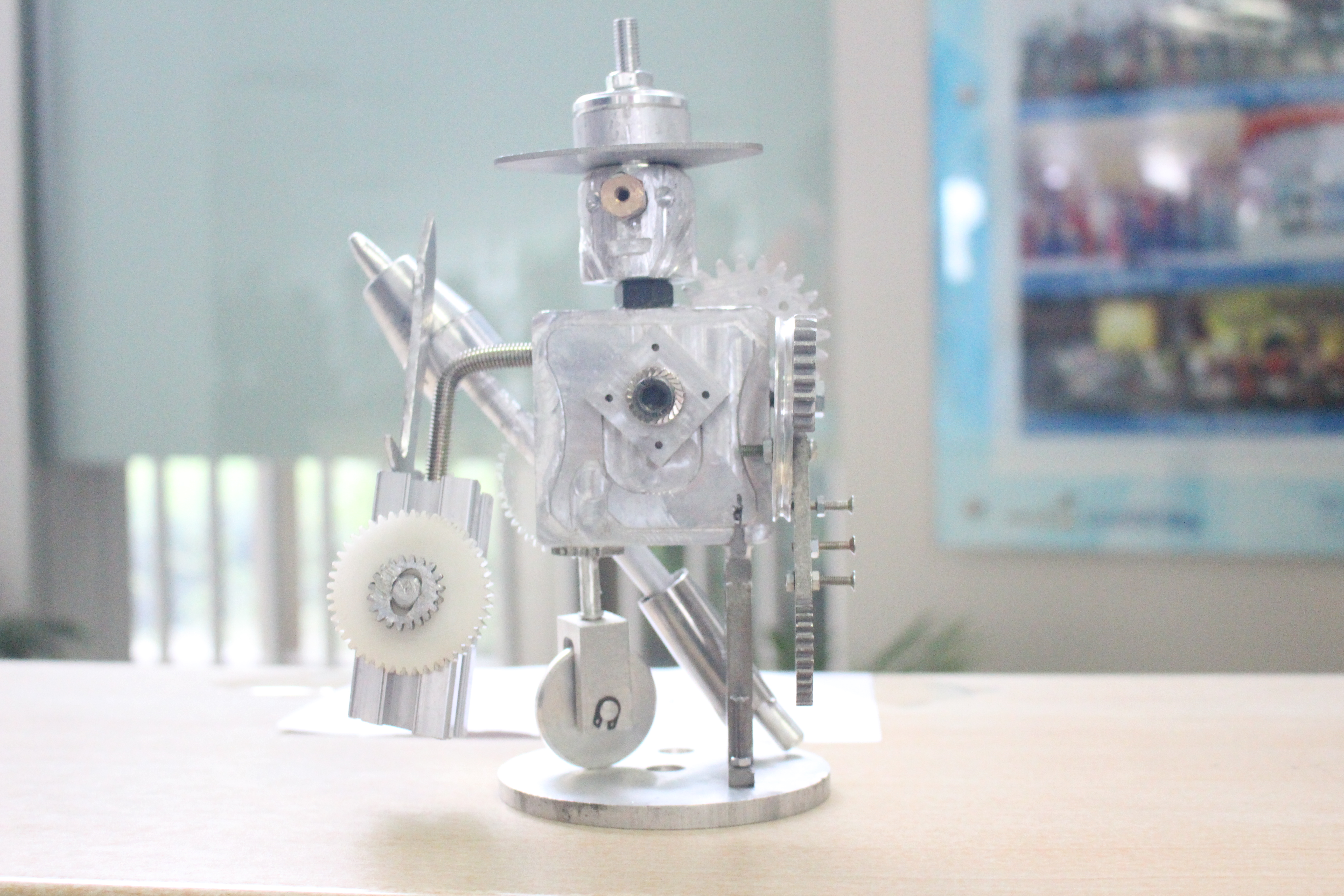 下午一点钟虽然天空飘着小雨,但是仍然不能抵挡同学们参赛的热情。同学们的参赛作品均由车间内的各类废弃零件组合完成,本是废弃了的零件经过同学们的精心设计和加工组装变成一件件极富创意的作品,充分展示了各位同学的创新精神。参赛作品多种多样,有多功能的台灯,有便携式小车,也有精致的小屋。每一件作品都是同学们亲手做出来的,凝聚了他们心血,每一个参与者都值得鼓励。评比现场,评委老师们认真负责,对每一件作品进行评分并与同学们交流,现场时不时传出一阵阵欢笑声,场面氛围好不热闹。