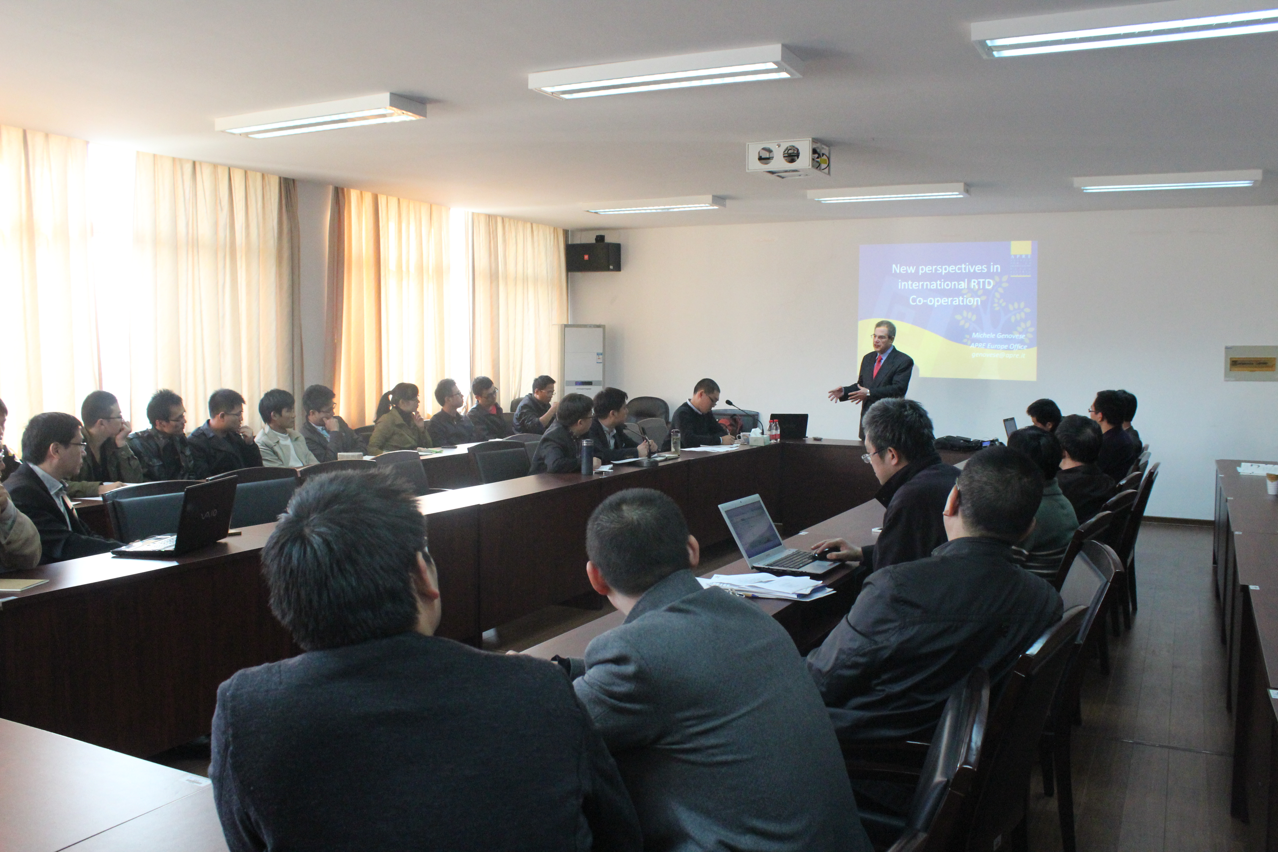 来访期间, Michele Genovese先生先后为我校色情小说 和全校教师就欧盟国际科技合作项目的相关问题开展了两次讲座。在讲座中,他总结了近年来中国的科研工作者在欧盟国际科技合作项目申报中的总体态势,并对欧盟国际科技合作项目的申报政策、项目评估、经费管理等方面进行了详细的介绍,同时对于我校有志于申请欧盟国际科技合作项目的教师给予了建议,他认为及时了解项目信息,积极寻找合作伙伴是成功申报的前提,符合欧盟国际项目研究导向且具有新颖、前沿的研究切入点则是项目最终能够胜出的关键,循序渐进,逐步深入则是每个中国科研工作者应该秉持的基本态度。他风格严谨求实、风趣幽默,给参加讲座的师生留下了深刻的印象。