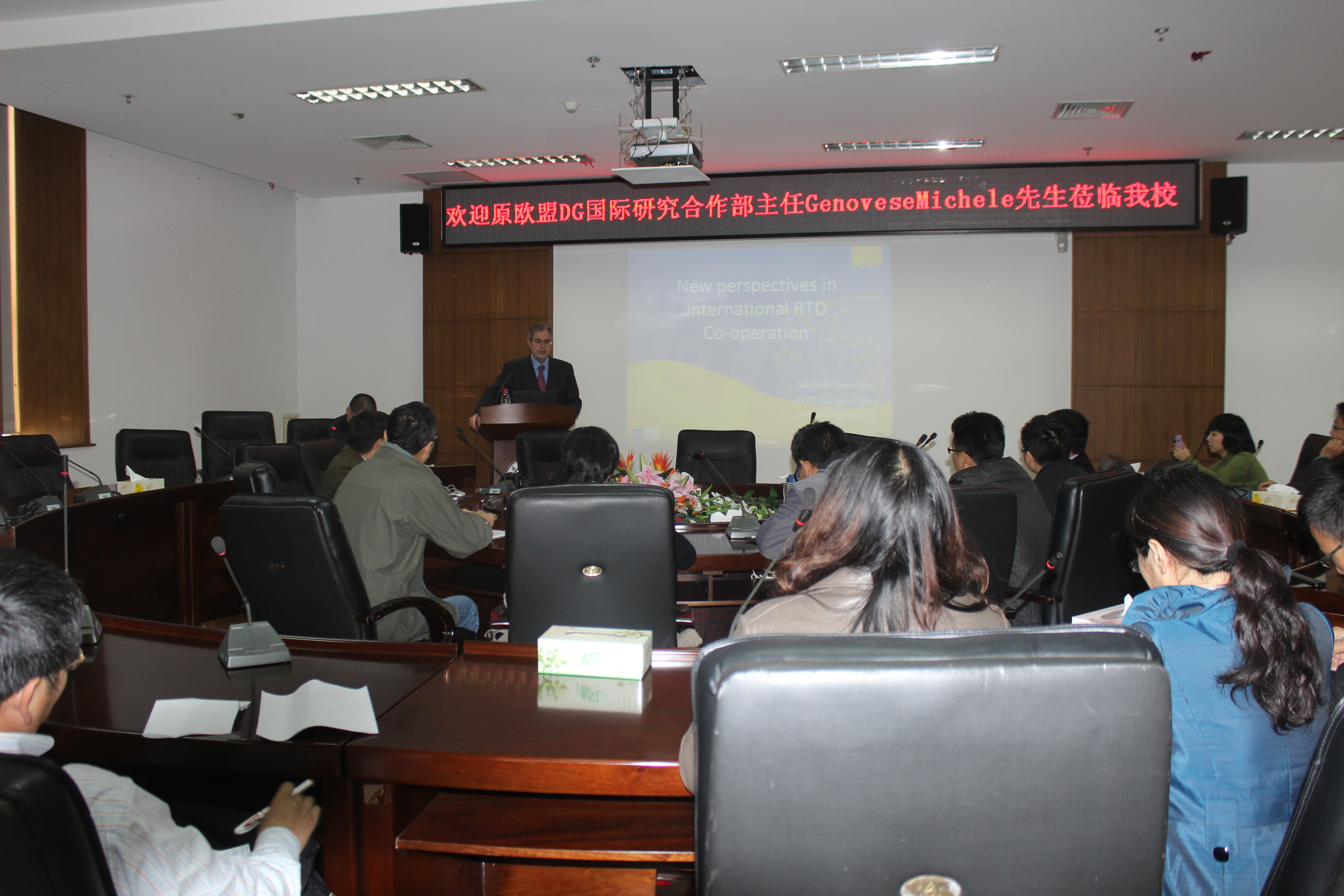 原欧盟DG国际研究合作部主任 Michele Genovese先生应我校激光与光电学科特聘教授冯爱新邀请,于11月19日—22日来我校开展为期4天的国际科技合作和讲学。