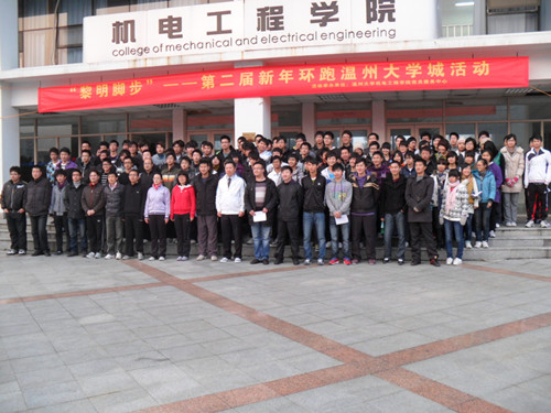 随后,所有的人齐唱《歌唱祖国》,在雄壮嘹亮的歌声中,本次新年第一跑活动正式开始。每个人都怀着激动和兴奋的心情奔跑在高教园区熟悉的道路上。他们从机电学院门口出发,经过南大门、图书馆、商务中心、C区宿舍,路过温州医学院大门、温大北校区大门、温州职业技术学院,最后回到色情小说 东大门。所有老师和同学都跑完了全程,并在东大门合影留念。