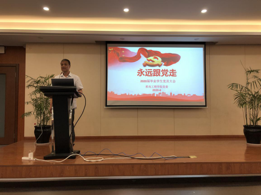 2020年6月19日18:30,在机电学院6B309举行机电学院2020届毕业生党员教育大会暨新发展党员培训会。出席会议的有机电学院党委书记周荣老师、副书记黄玮老师以及全体毕业生党员、新发展党员,会议由党建指导老师杨奇主持。