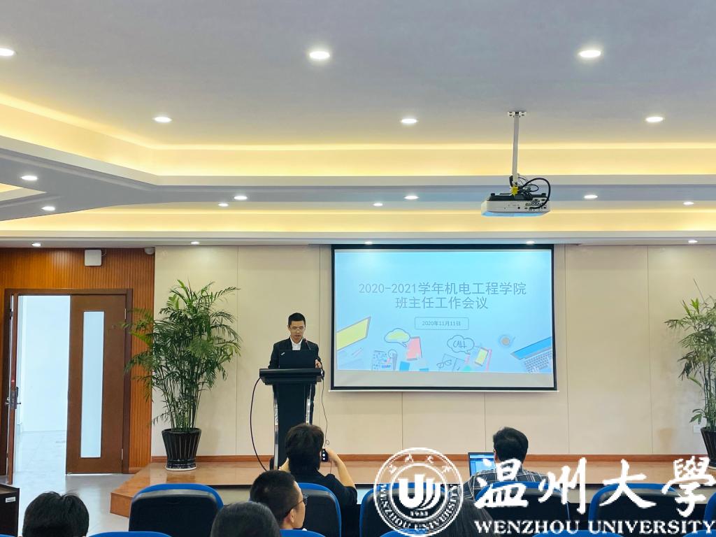 班主任是学校育人工作的关键人物,是教学工作的核心力量。为了进一步提高班主任工作能力,增强班主任工作能力,强化班级管理水平,提升班级管理工作的针对性和实效性,2020年11月11日13:00,在6B309会议室召开2020-2021年度机电学院班主任工作会议,院党委副书记黄玮老师、全体辅导员、班主任出席会议。