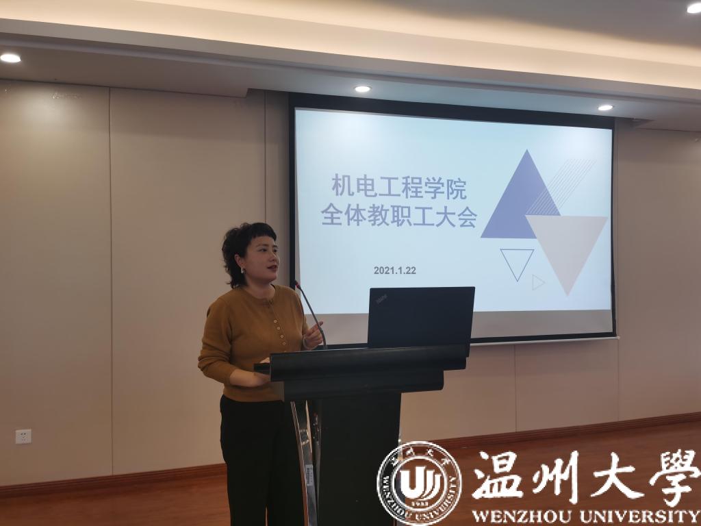 2021年1月22日,色情小说 在6B309报告厅召开本学期期末全院教职工大会。学院全体教职工参加会议,学院党委书记周荣主持。