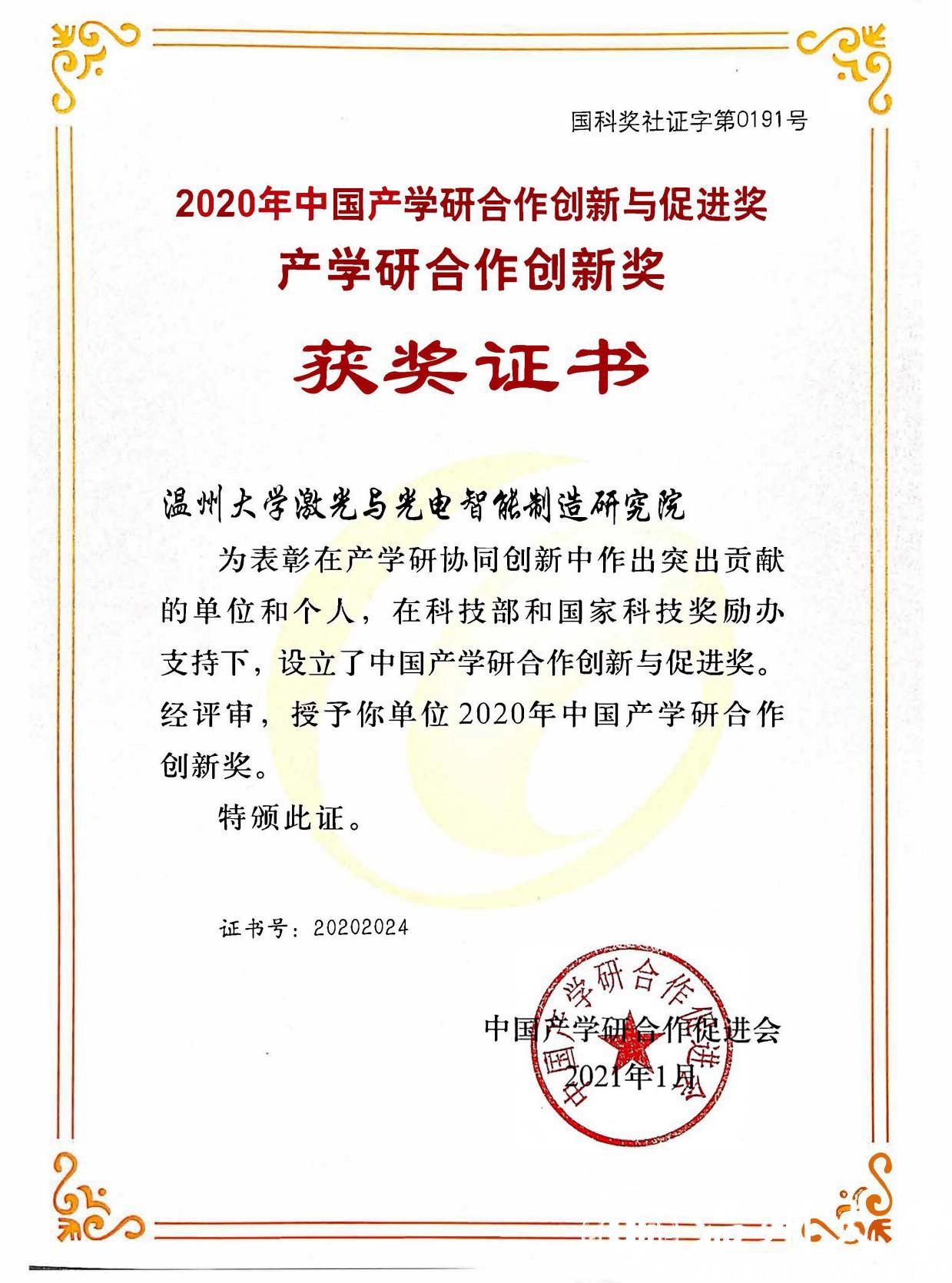 激光与光电智能制造研究院荣获产学研合作创新单位奖