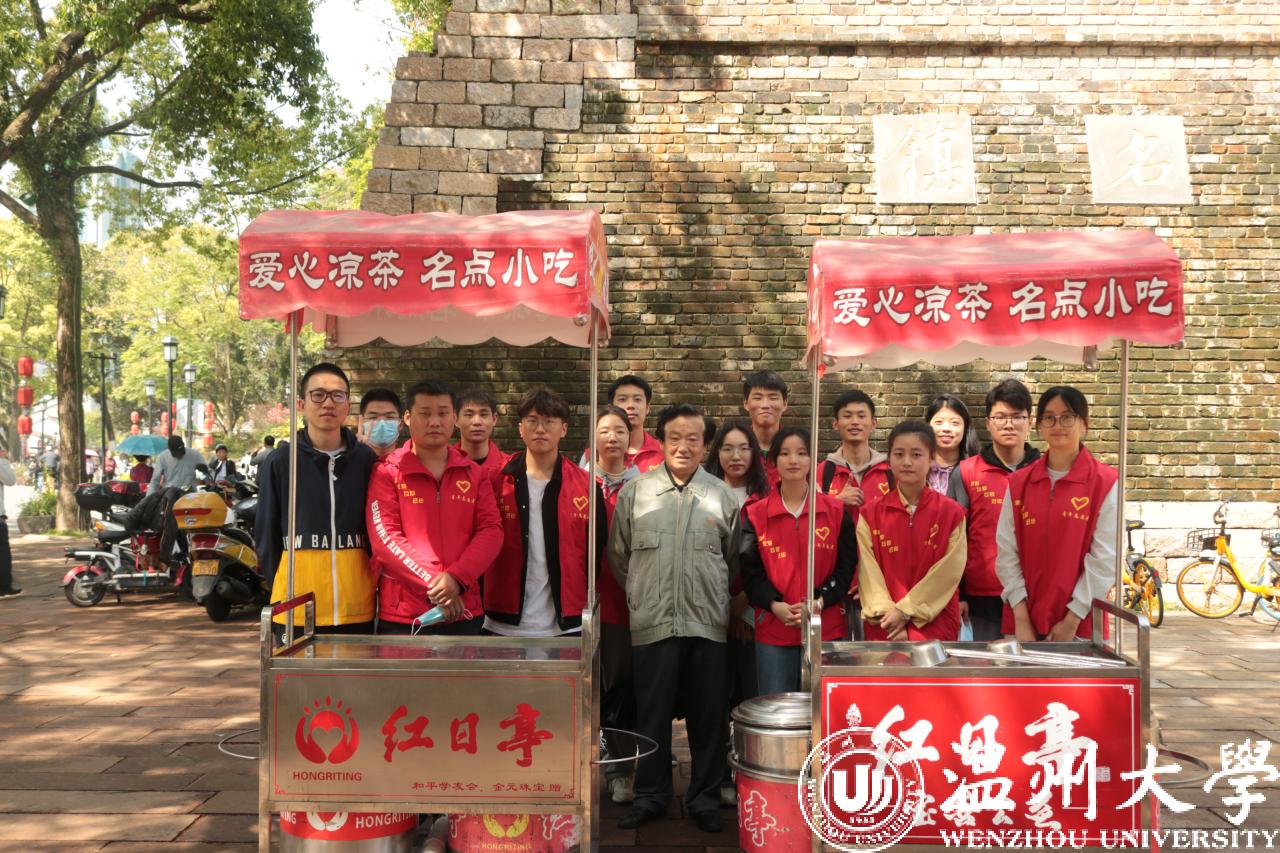 活动当天,在学院辅导员史凤娟、雷宏宇老师的带领下,10名预备党员和4名志愿者来到温州著名公益服务组织——红日亭。在与阿姨们的热情交流后,了解到当天的主要工作:推着红日亭特有的装有“红枣银耳羹”和“茯苓茶”的红色小车前往镇名广场、公园路街道等地向警察叔叔、环卫工人、过往的行人等免费派送。派送结束后回到红日亭,打扫干净红色小车和保温桶。在活动中传播“红日亭”的暖心善意,体现机电学子的爱心之举。