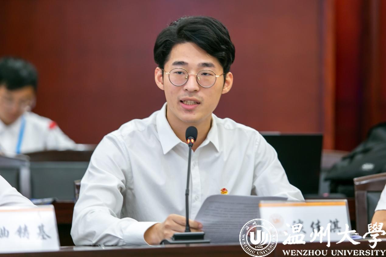 第三项议程,院研究生会执行主席谈佳淇就研会的工作进行汇报,并提出构建对内对外“双核心”的自我管理、自我服务的新型载体的设想。