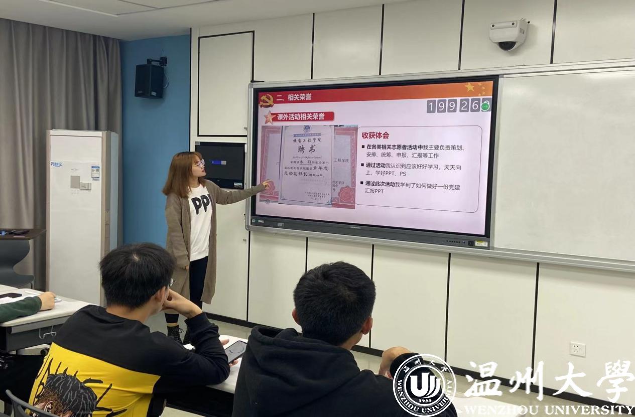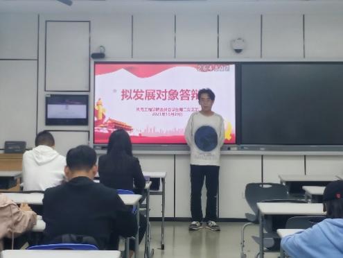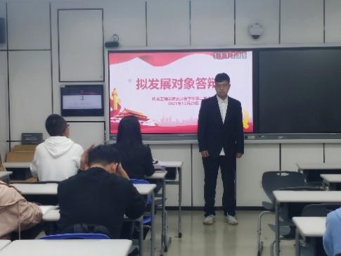 在本次答辩会上,学生第一党支部梁嘉伟、余成玘、林家豪、周洋光、周斌瑞、金鸿斌、徐湘喻、张越洋、周欲欣9位同学参与答辩;学生第二党支部苏智楠、张涛、郭治东、蔡嘉淇4位同学参与答辩;学生第三党支部朱莉、魏淳辉、张德楠、林慧、严潘铃、范雯慧、吴子豪、叶程鹏、王成鑫、陈曹宇、虞远航、曹高涵、戚建波、郏杨昊、王洪群、李佳明、余飞岑17位同学参与答辩。答辩人主要从对党的认识、入党动机、学业水平和参加实践等方面进行汇报。同时,支部党员对候选人进行党史党章,时事政治等的提问。