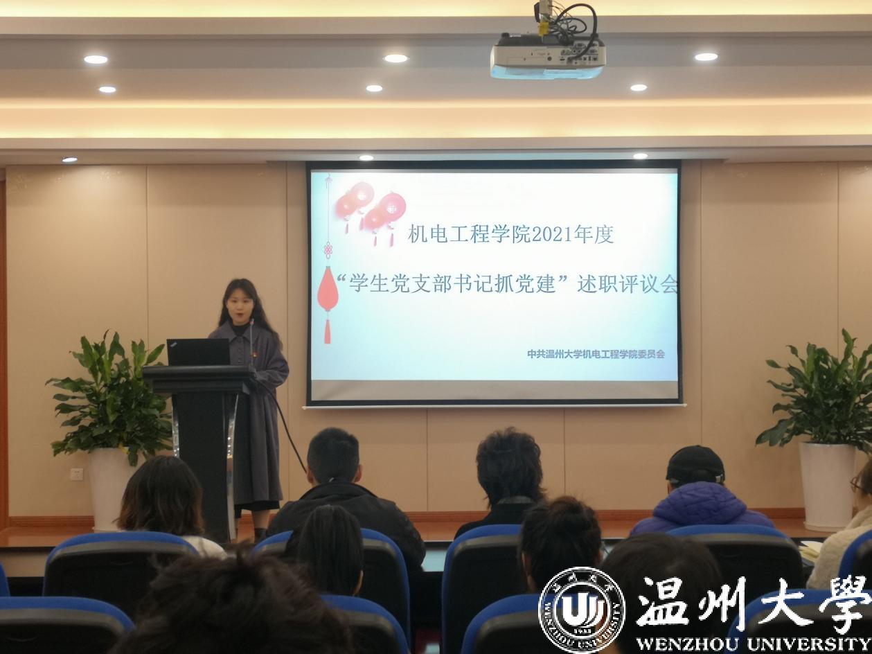 辞旧迎新强党建,抓院促系正党风。为全面梳理盘点本年度学院学生党建工作,督促学生支部书记聚焦主业主责,深入落实新时代高校党风肃正精神。2022年1月7日,色情小说 2021年度“学生党支部书记抓党建”述职评议会在6B309报告厅召开。学院党委副书记黄玮、学工办主任杨奇、各学生支部书记以及党员代表参加本次会议。