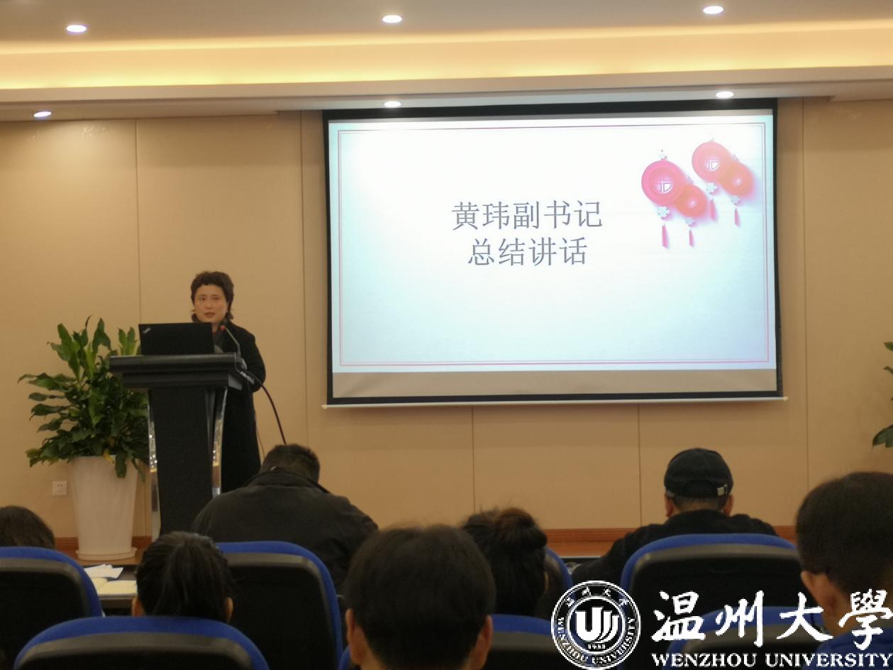 最后,学院党委副书记黄玮总结讲话。她首先对各支部书记的认真履职并且取得的成绩表示了肯定;同时对抓实基层治理、优化顶层设计、强化理论学习、把控组织结构、提高党员凝聚力等方面提出了要求。希望大家聚焦理论学习,发挥党支部战斗堡垒作用;领学劝学,提升支部党员整体能力素质;每月一学,每周一聚,打造团队型党支部,真真切切地办实事、解难题,发挥党员先锋模范作用。