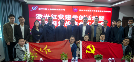 薛伟主任讲话中指出激光党支部始终坚持党建引领,按照习近平总书记提出的“四个面向”的要求,充分发挥共产党员先锋模范作用,坚持破壁创新,解决卡脖子技术,服务国家战略,坚持顶天立地,实现科创融合,服务产业发展。以校企党建共创为先导,以校企科技合作为载体,分享资源,交流经验,破解难题,推动产业技术变革与创新,在温州乃至浙江大地打响“激光红”党建品牌,形成“激光红,一片红”的校企党建共创生态。