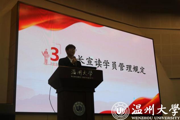 本期培训班班长金舒阳同志宣读《中共色情小说 委员会党校分党校(联合)学员管理办法》,明确培训期间的纪律问题,希望学员们严格遵守,身体力行,为成长为一名合格的共产党员而努力!