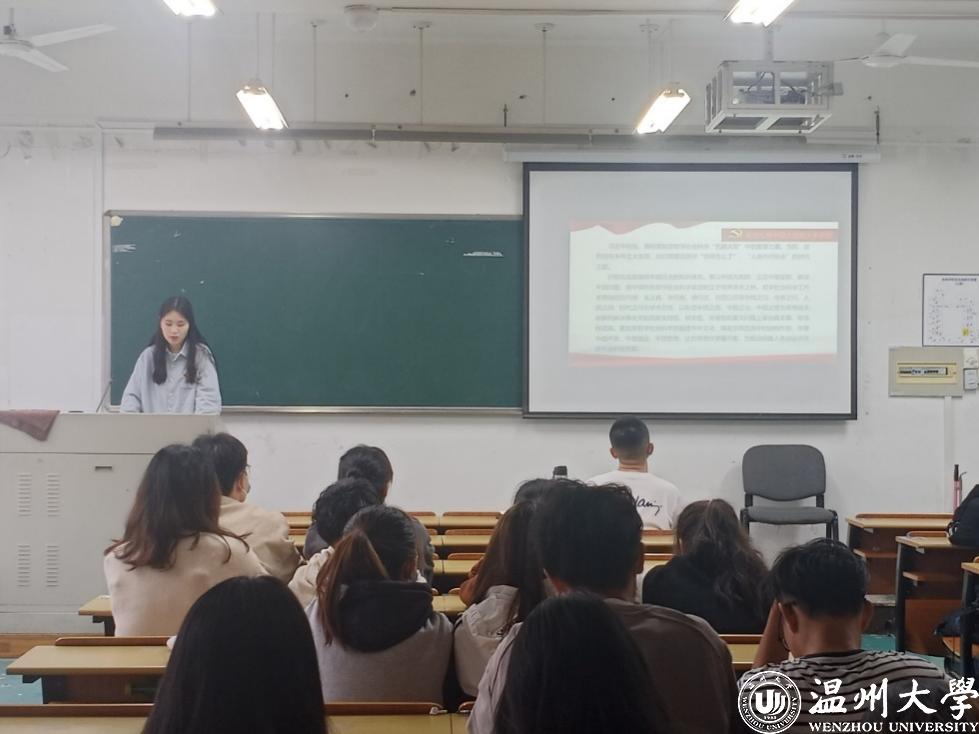 本科生第二党支部黎雯婧同志带领大家学习了重要讲话精神,要坚定跟党走、建功新时代,营造昂扬向上、团结奋进的浓厚氛围,要争做堪当民族复兴重任的时代新人。大家还共同观看了《感动中国》2021年度人物——江梦南的感人事迹,鼓励在座的党员同志、积极分子向模范人物学习,学习永不放弃、坚毅奋进的精神,在青春的赛道上奋力奔跑,争取跑出当代青年的最好成绩!