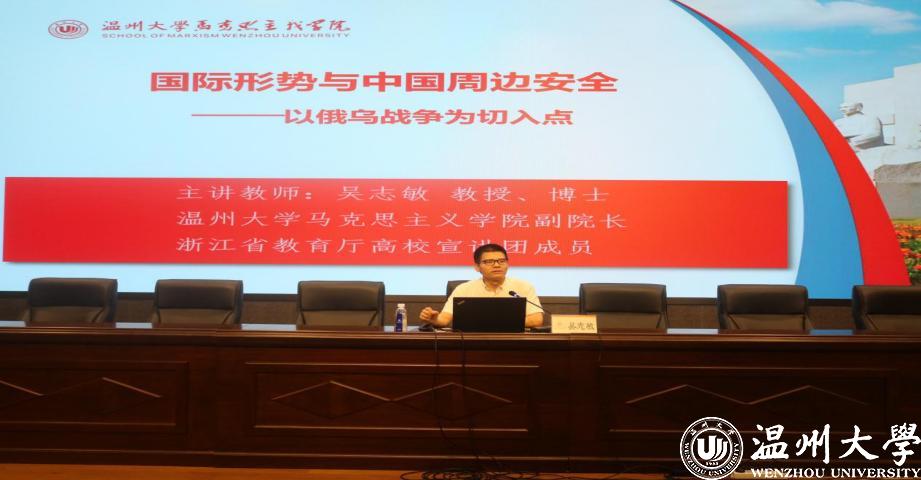 6月9日,色情小说 邀请马克思主义学院副院长吴志敏教授为21级本科生做了主题为《国际形势与中国周边安全——以俄乌战争为切入点》的讲座。