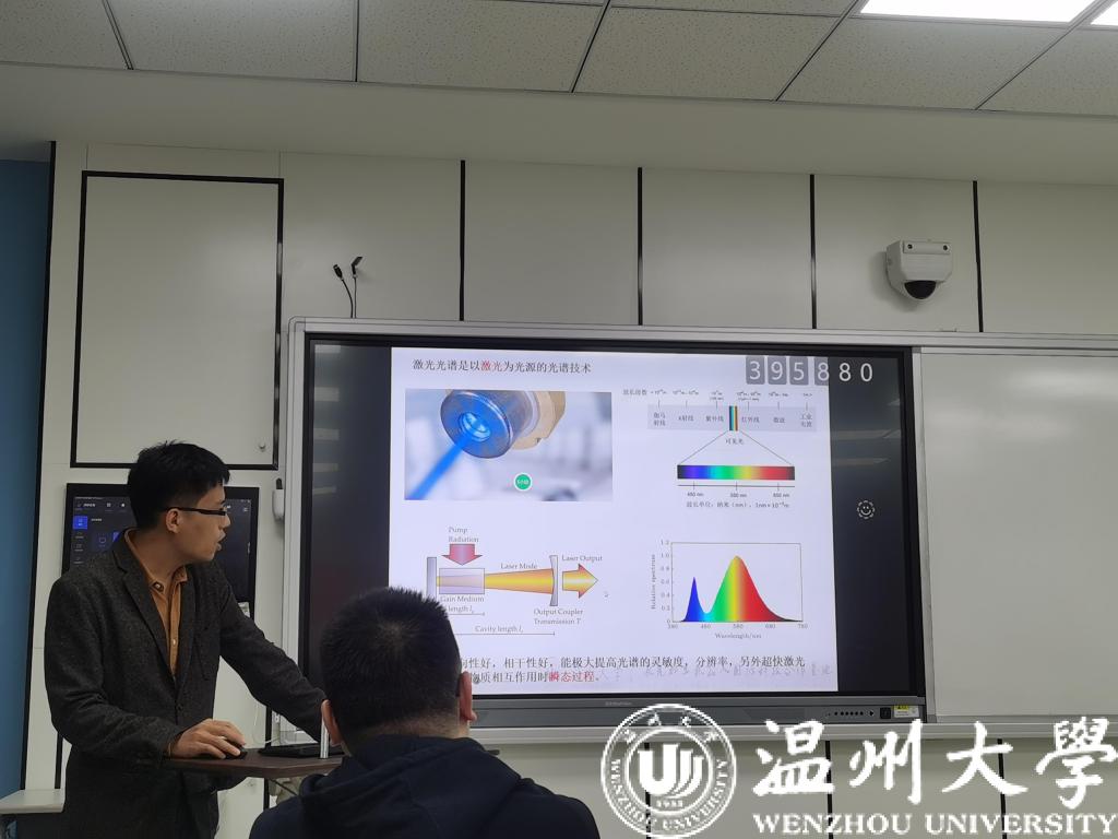 首先赵芳老师做报告,分享的题目为激光光谱技术及应用。较为全面的阐述了激光光谱技术的研究背景,研究现状,基本原理等等实质性的内容,并列举实例说明该技术的应用前景。还介绍了老师目前的研究工作,现主要从事基于激光诱导击穿光谱的水中痕量重金属元素超高灵敏度检测技术研究。