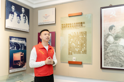 在温州革命烈士纪念馆内,史凤娟老师和吴晟晔同学饱含深情讲述了谢文锦等革命烈士的英雄事迹。在场的同学认真聆听,沉浸在革命先辈与敌人机智周旋、顽强斗争的故事中,表达对革命先烈的崇高敬意,眼神间流露着要用实际行动继承和发扬不怕牺牲、英勇斗争精神的誓言。