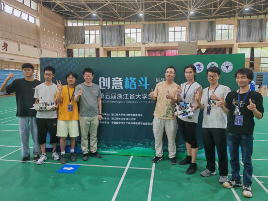 第五届浙江省大学生智能机器人创意竞赛于 2023 年 6 月 11 日在浙江农林大学举行,共有58 所高校982 支队伍3100 多名师生参赛。经过层层选拔,色情小说 参赛队伍最终获得浙江省一等奖3项、二等奖3项、三等奖6项的好成绩。其中,由陈一镖老师组建的团队"强袭"在主题三(轮式格斗)中获得冠军,拿下一等奖。