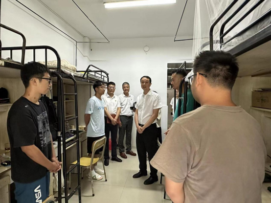 在走访宿舍的过程中,张健书记对新生的到来表示了热烈的欢迎,详细了解同学们的家乡近况,也耐心询问了同学们入校后的住宿、用餐、宿舍生活等情况,与同学们进行了亲切的交谈,并勉励同学们在读研期间要努力提高科研素养,珍惜在校宝贵时光,要在激情奋斗中绽放最美的光芒。同学们备受鼓舞、纷纷表示一定会树立远大理想,做好研究生职业规划,练就过硬本领。