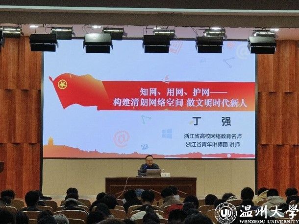 随后,丁强副书记带来《知网、用网、护网——构建清朗网络空间 做文明时代新人》的专题讲座。