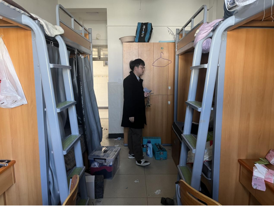在学生宿舍检查过程中,黄玮副书记和留宿学生亲切交谈。询问学生留校的原因,提醒学生尽快完成时间,提早返乡;对于毕业班的学生,要趁着假期,尽快的找工作;提醒最后一位离开宿舍的同学,要记得关闭水电、关好门窗。对于有问题的学生,也进行了答复和现场处置。