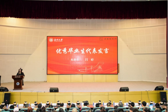 毕业典礼在家长代表引吭高歌中达到高潮,学弟学妹们用歌声送别毕业生,祝愿他们在未来的生活、工作、学习中,一帆风顺、万事如意。
