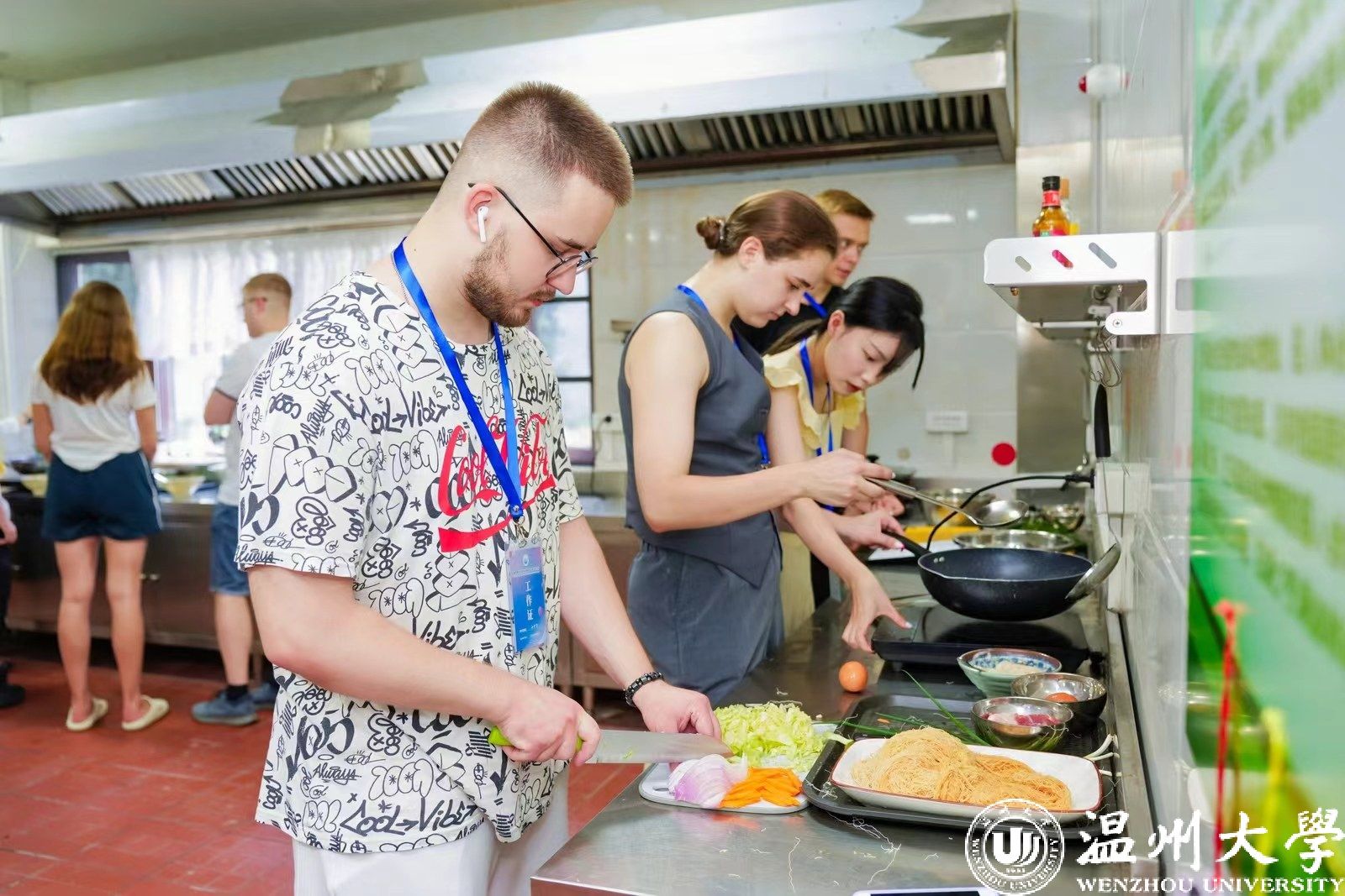 紧接着,代表们参观了瓯菜博物馆。讲解老师介绍了瓯菜的发展历程和代表性菜肴。在老师的指导下,青年们学习制作炒粉干和煮馄饨两道地道的瓯菜。这次烹饪体验不仅让他们品尝到了地道的温州美食,还学习了温州传统的烹饪技巧。