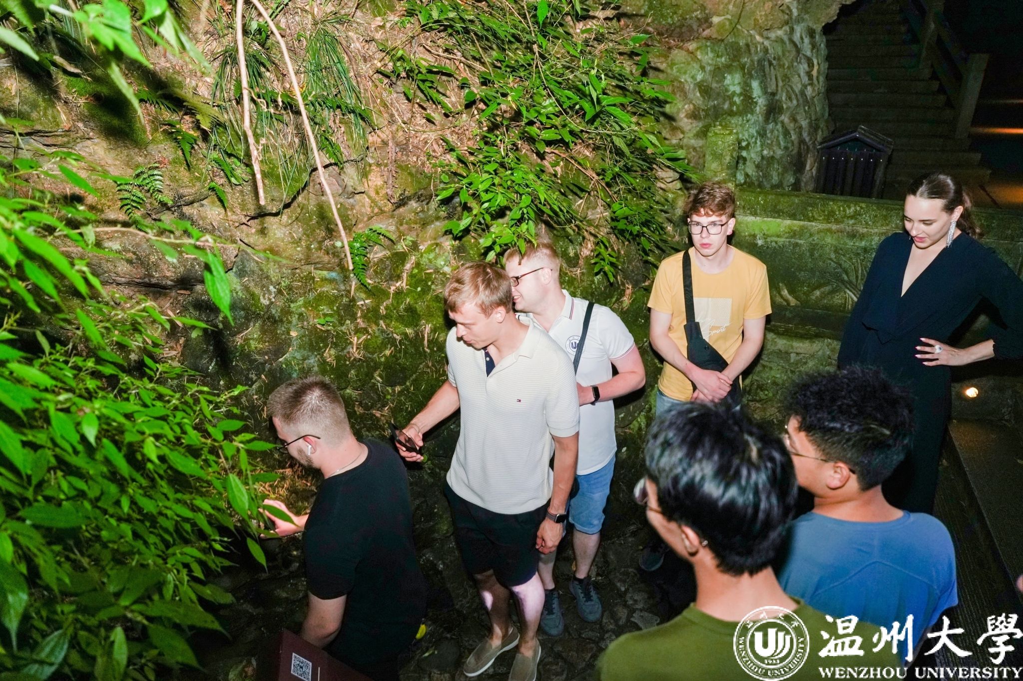 夜幕低垂,大家游览了灵峰景区的夜景。微光中峰峦叠嶂,宛如仙境,中俄青年漫步其间,沉醉于这份宁静与神秘,感受自然与人文的完美融合。