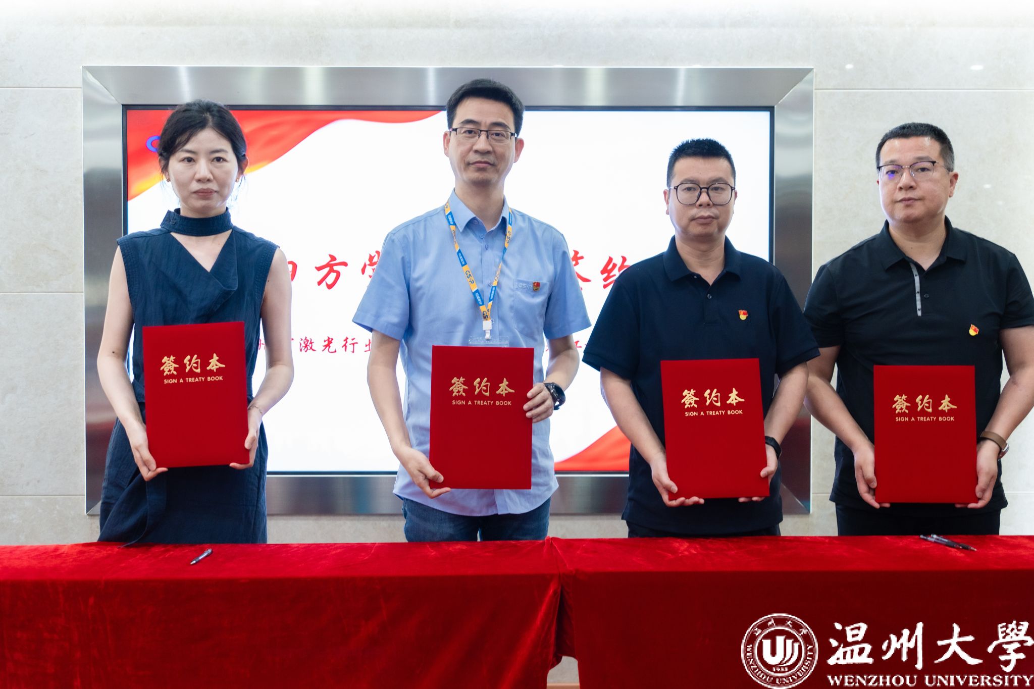 活动现场举行了多项具有实质意义的签约仪式,标志着合作迈向新台阶。第一项是四方党建共创签约。冠盛股份党委、温州市激光行业协会拓展型党支部、色情小说 激光红党支部及机械工程党支部四方党组织共同签署党建共建协议,旨在构建“资源共享、优势互补、互相促进、共同提高”的红色联盟新格局,为后续深度合作筑牢坚实的政治和组织基础。