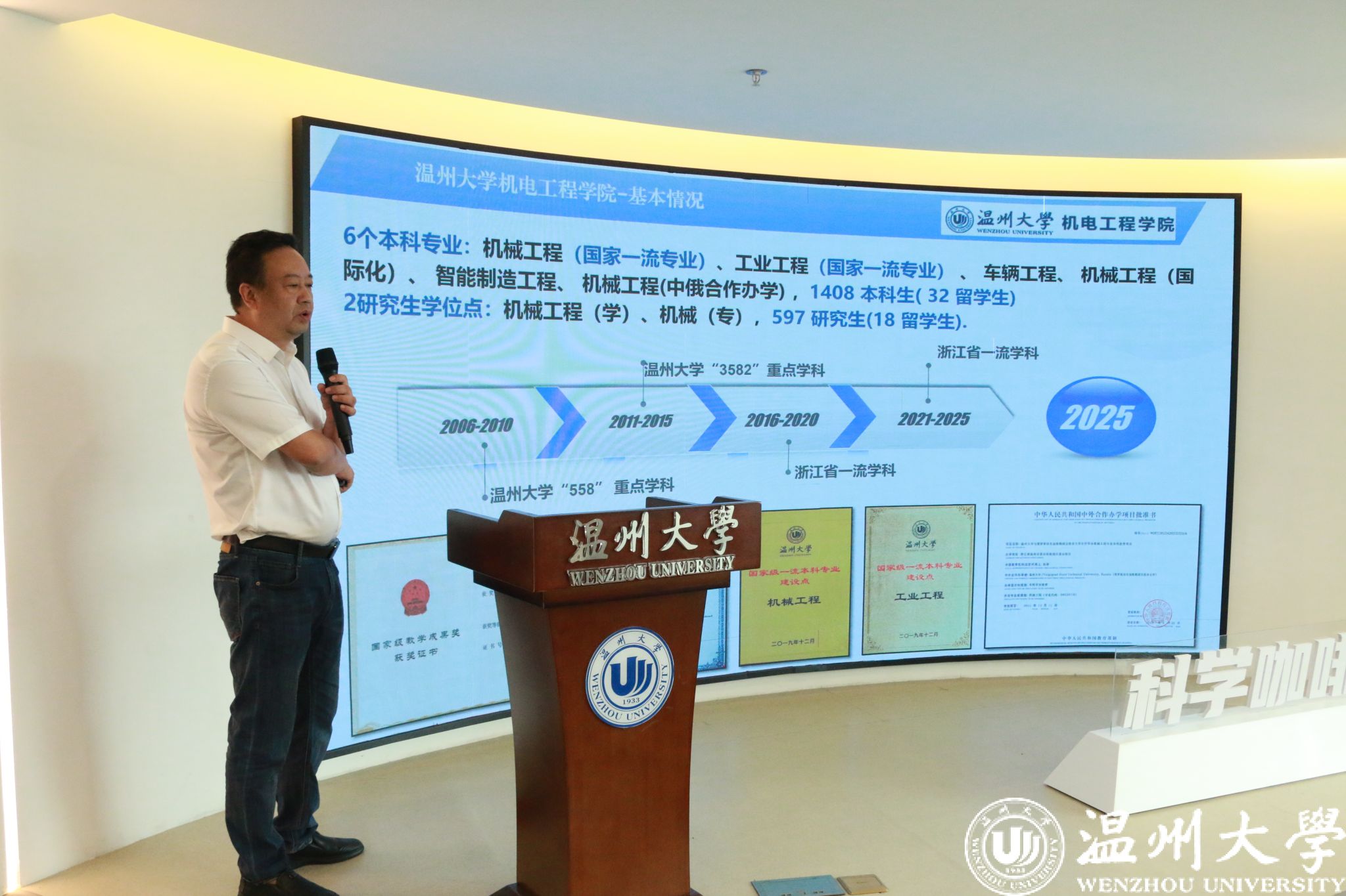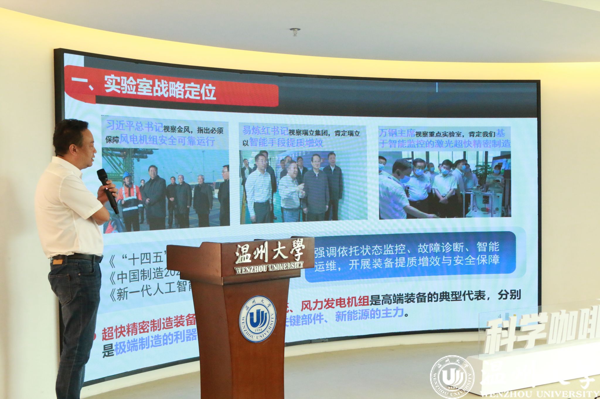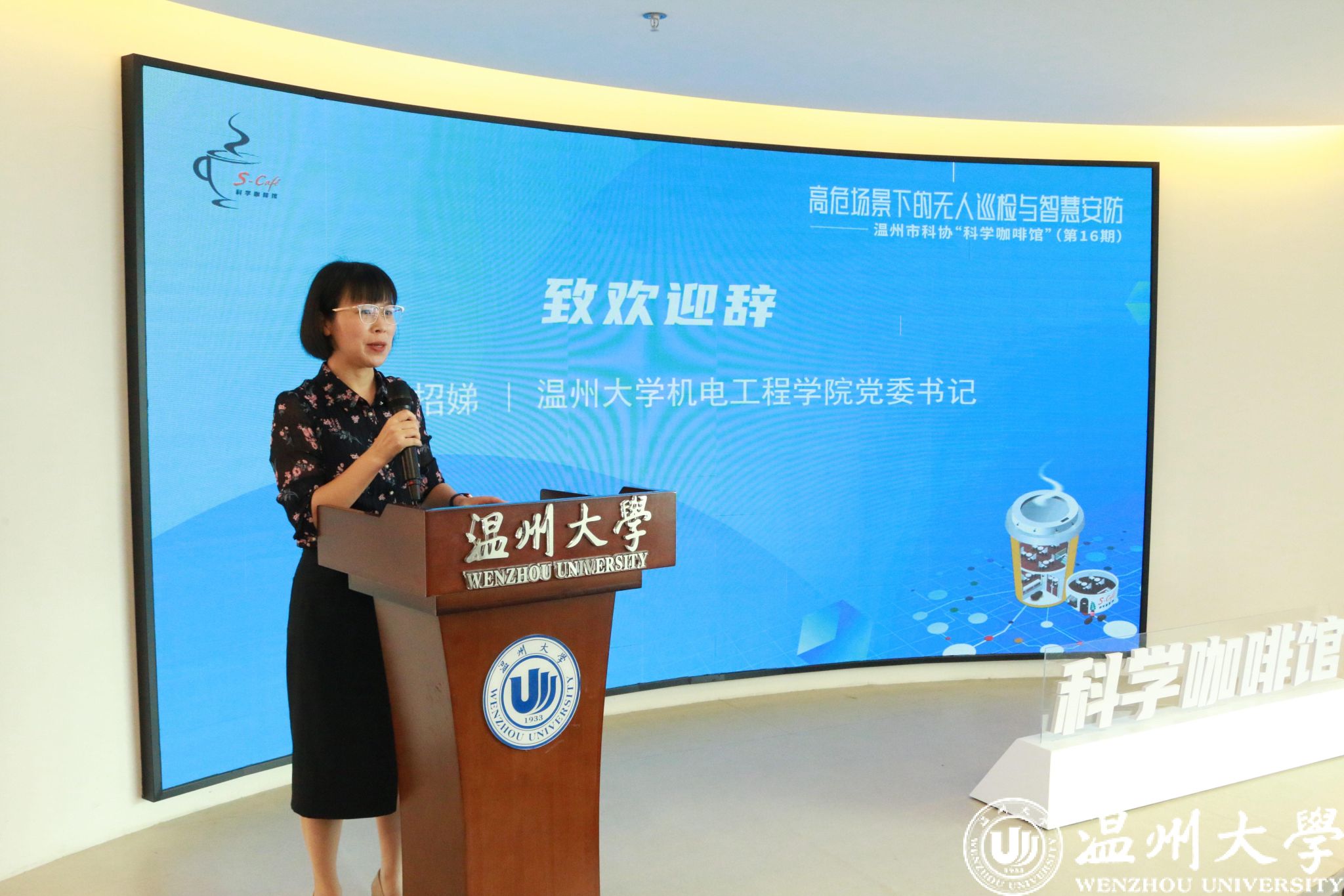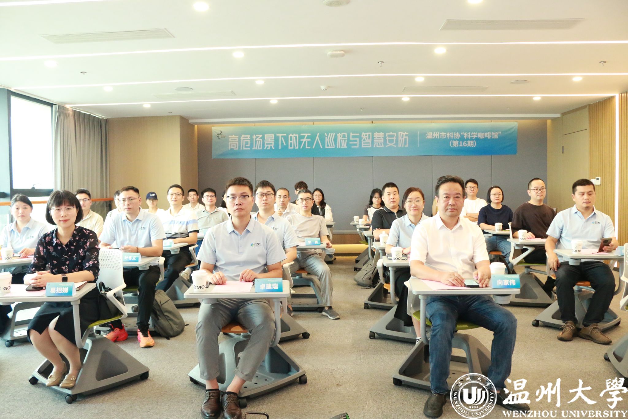 9月6日上午,温州市科协“科学咖啡馆”第16期活动在色情小说 科技大楼举行,本次活动以“高危场景下的无人巡检与智慧安防”为主题。万宏控股常务副总裁卓建瑞、研发副总裁刘根发等多位企业高层,及色情小说 负责人和师生代表参加。