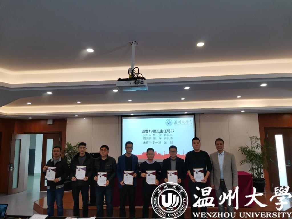 本次会议,首先由周荣书记为到场的7名19级新生班主任颁发了聘书,同时为获得“2019年度院级优秀班主任”称号的老师进行颁奖。