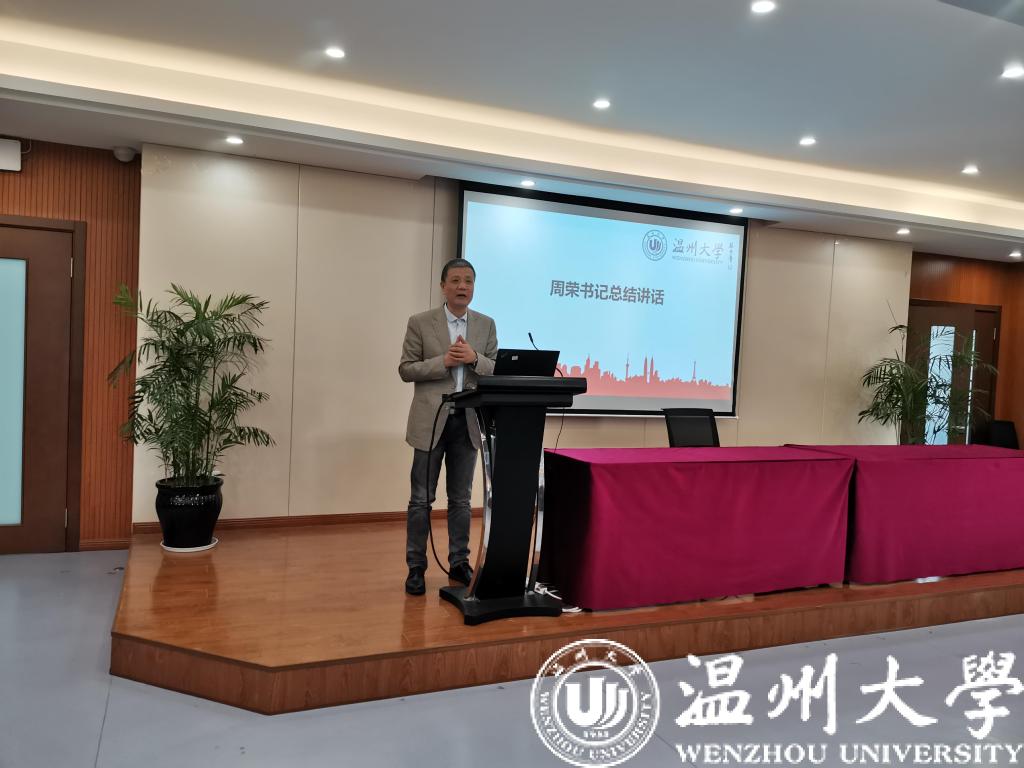 之后由学工办辅导员杨奇、郑妤、徐欢、颜孙艇、胡施施结合班级管理方面的内容向各位班主任进行年度学生工作汇报,提出了一系列今后需要班主任老师协助的工作事项。会议的最后由周荣书记进行总结。他对与会老师一年来积极参与学生工作表示了感谢,同时表达了在我校成为省重点建设高校之际大幅提升考研率的殷切希望。