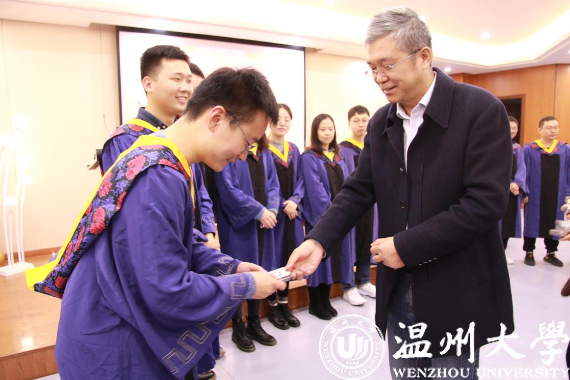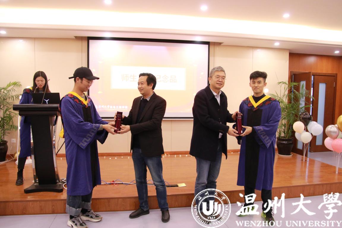 导师向毕业生赠送毕业纪念品