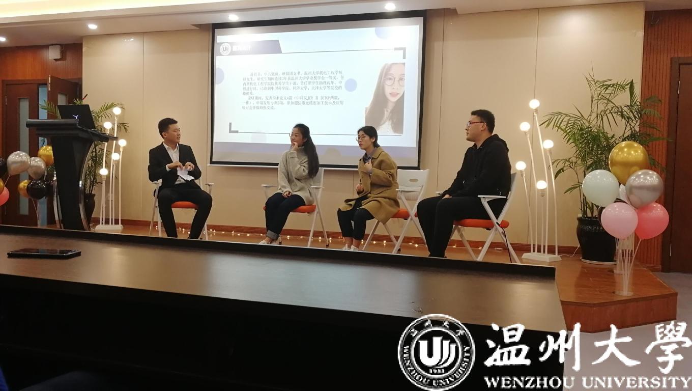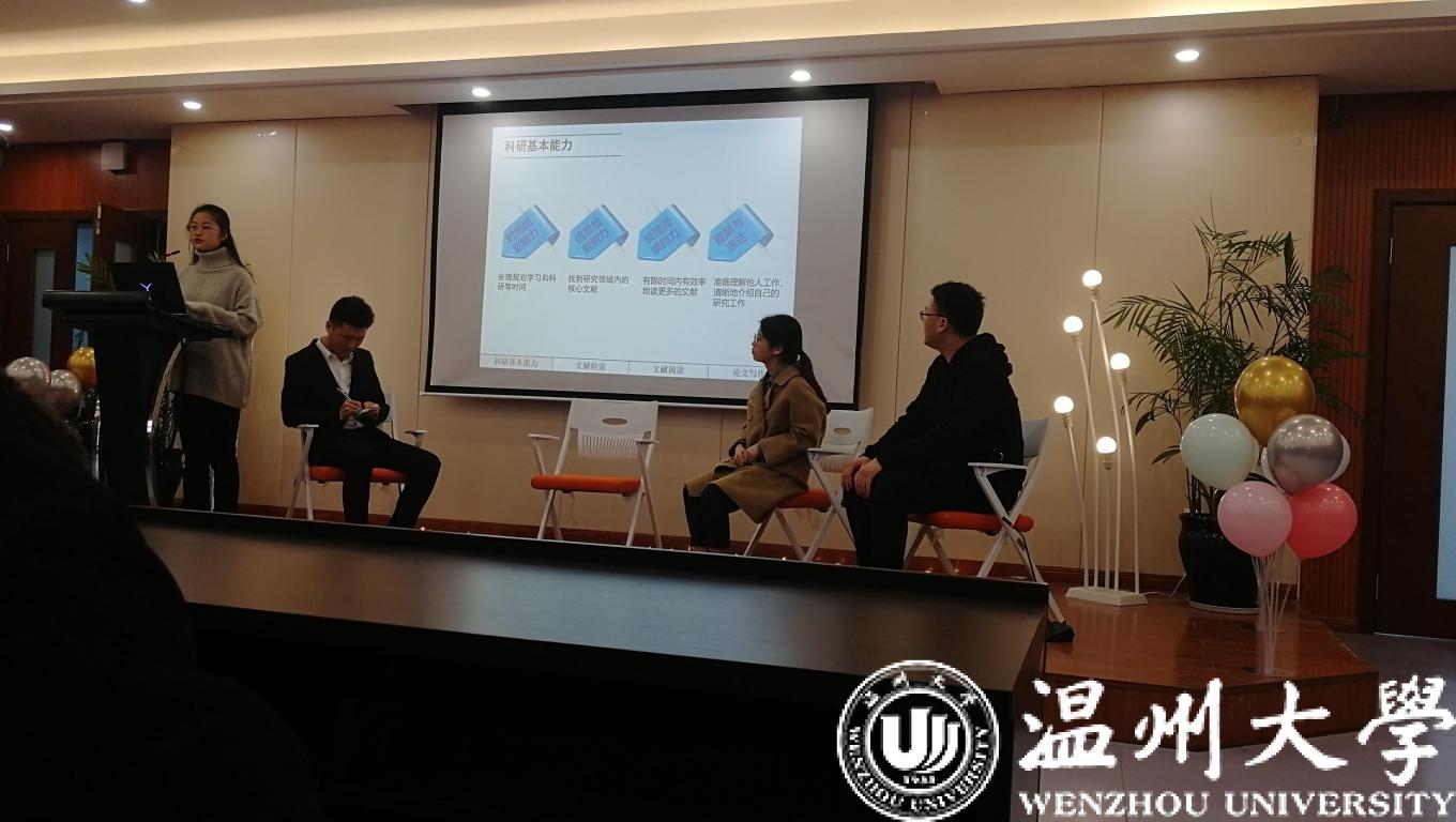 12月19日,色情小说 成功举办2019年优秀学子学术经验交流会。交流会邀请到浙江省“十佳大学生”、新加坡南洋理工大学在读博士龚玲艳,17级刘琨、潘俏菲、高闯分享了各自的学术经验。学术分享会吸引了色情小说 众多研究生和本科生前来驻足聆听。