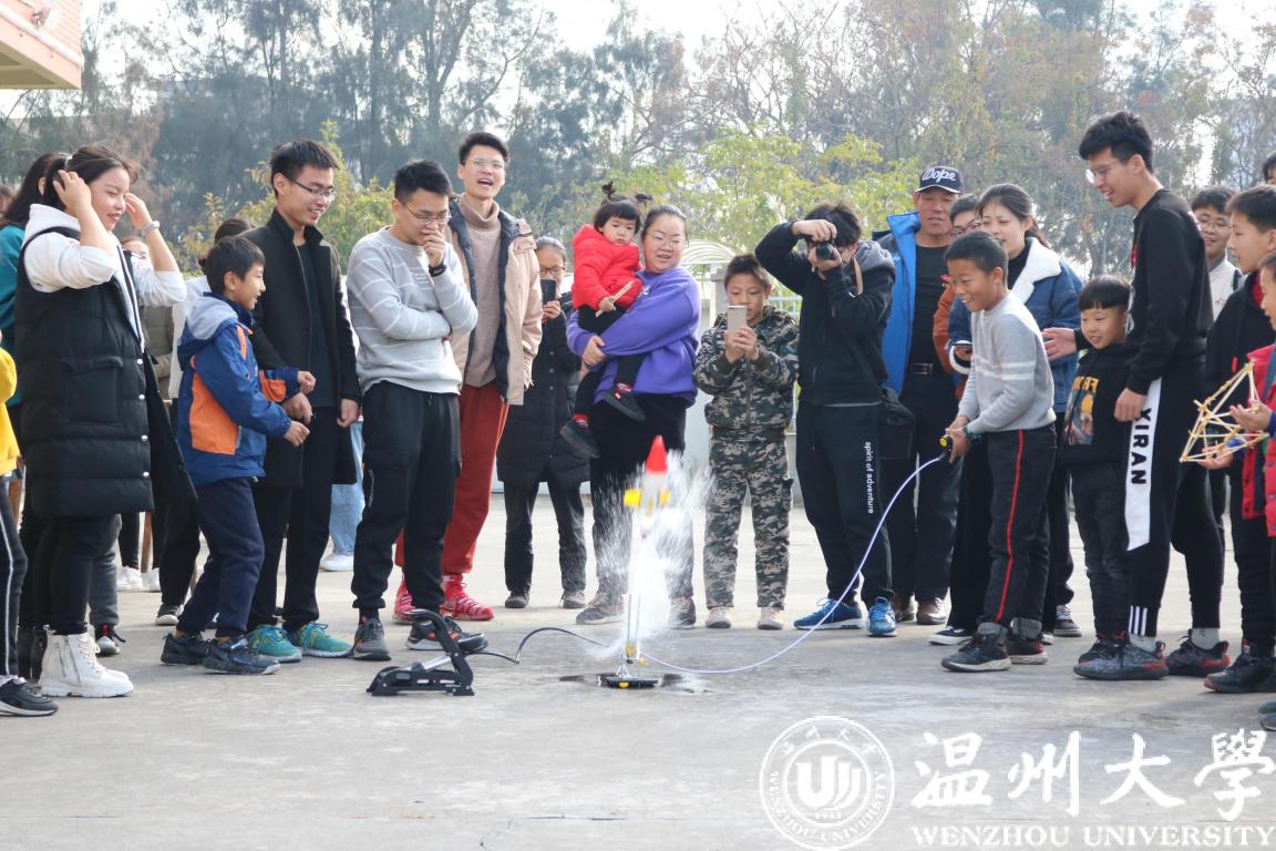 当实践队抵达双昆村文化礼堂时,大人们早已携带着小孩等待着我们的到来。杨奇老师在与文化礼堂负责人短暂交流后,同学们纷纷拿出自己的“看家本领”进行现场组装展示。首先是“筷子搭桥”。如何把一根根独立的筷子搭建起来形成稳定结构呢?在实践队成员的指导下,几乎每一个小朋友们都参与其中,发动脑筋,奇思妙想地设计出了各式各样的“桥”。其次是“水火箭”表演。“水火箭到底是什么样的呢?”“它和‘火箭’有啥区别呢”,一个小朋友悄悄地问身边的大人。在实践队成员的精心讲解和演练下,小朋友们更是迫不及待地想要亲自上手,发射“水火箭”。而每一次的发射成功,他们都是拍手叫好,非常开心,示意我们:看,那是“我”发射的!看到小朋友玩的不亦乐乎,实践队成员傅镜霏说:“这是一次很有意义的活动,不仅把课堂学到的东西运用到生活中,还激发了小孩子们的科学兴趣。”