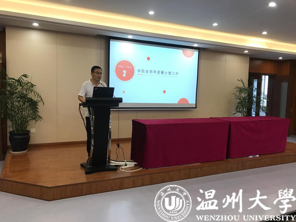 周荣书记首先向全体教师传达学校暑期党委理论中心组(扩大)学习会议精神。他表示,学院教职工要结合学院实际,学习贯彻谢树华书记、赵敏校长的讲话精神,统一思想,统一行动,凝聚力量,要把学校的这次会议精神切实落实到学院各项工作中,制定学院行动计划,为将学校建设成为“省市共建”省重点建设高校、博士学位授予单位、以侨为特色的“省部共建”高校做贡献。最后,周荣书记对本学期学院党委工作进行了重要部署。