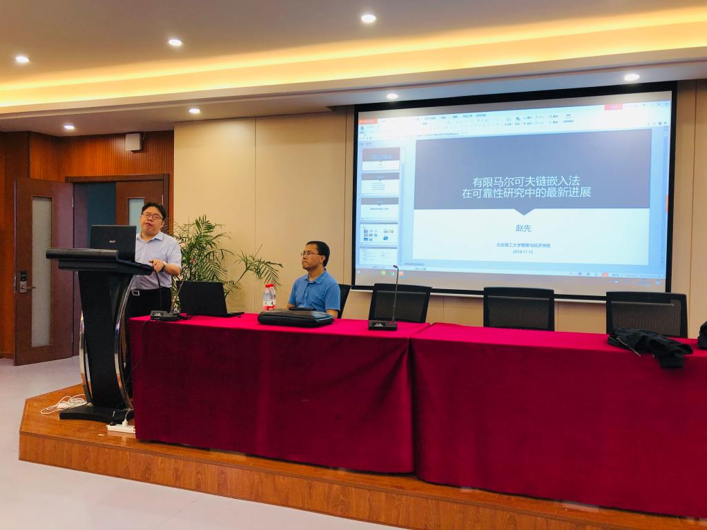2019年4月26日上午,北京理工大学管理与经济学院赵先教授在色情小说 6B309为色情小说 师生带来一场题为“有限马尔可夫链嵌入法及其在可靠性研究中的最新进展”的学术讲座。色情小说 院长周宏明教授,教师代表庞继红副教授、綦法群博士及2018级硕士研究生参加。