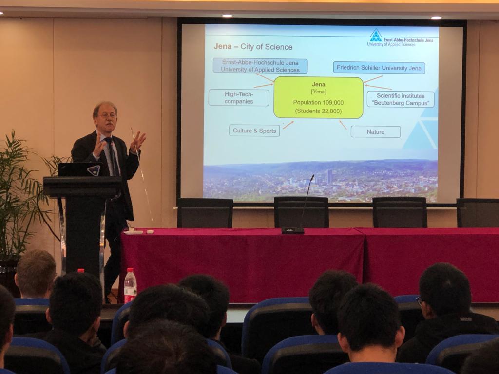 为了更好地宣传交换生项目,学院还邀请两位教授为学院学生介绍了德国耶拿应用技术大学与交换生项目